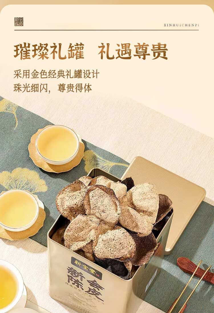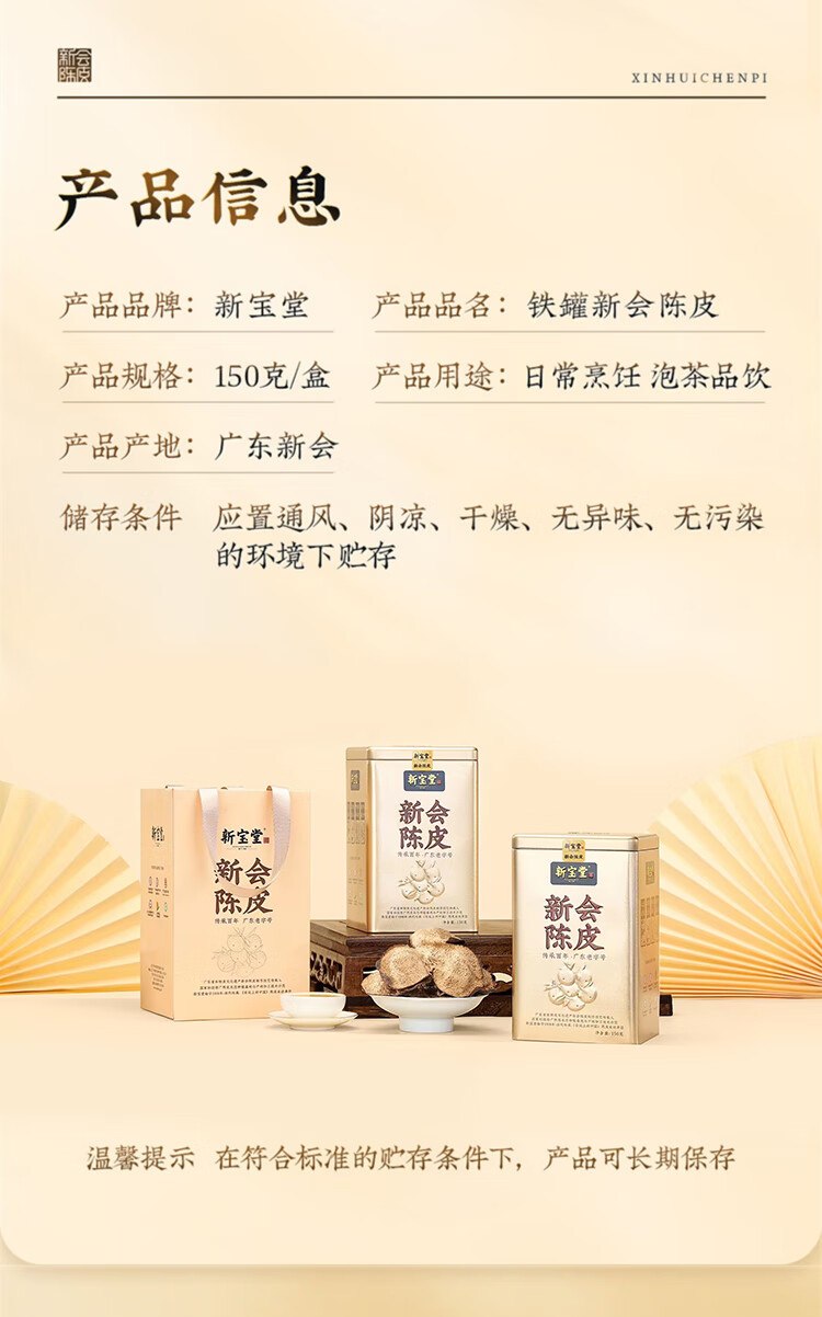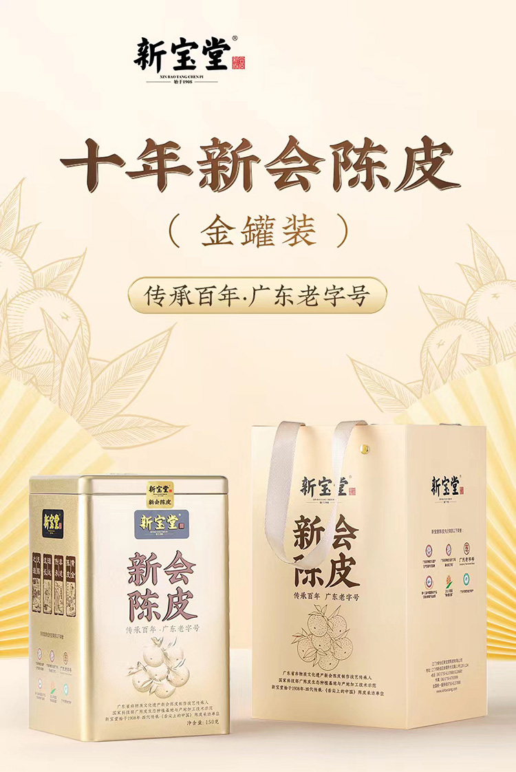 商品名称:新宝堂10年新会陈皮金罐礼盒150g