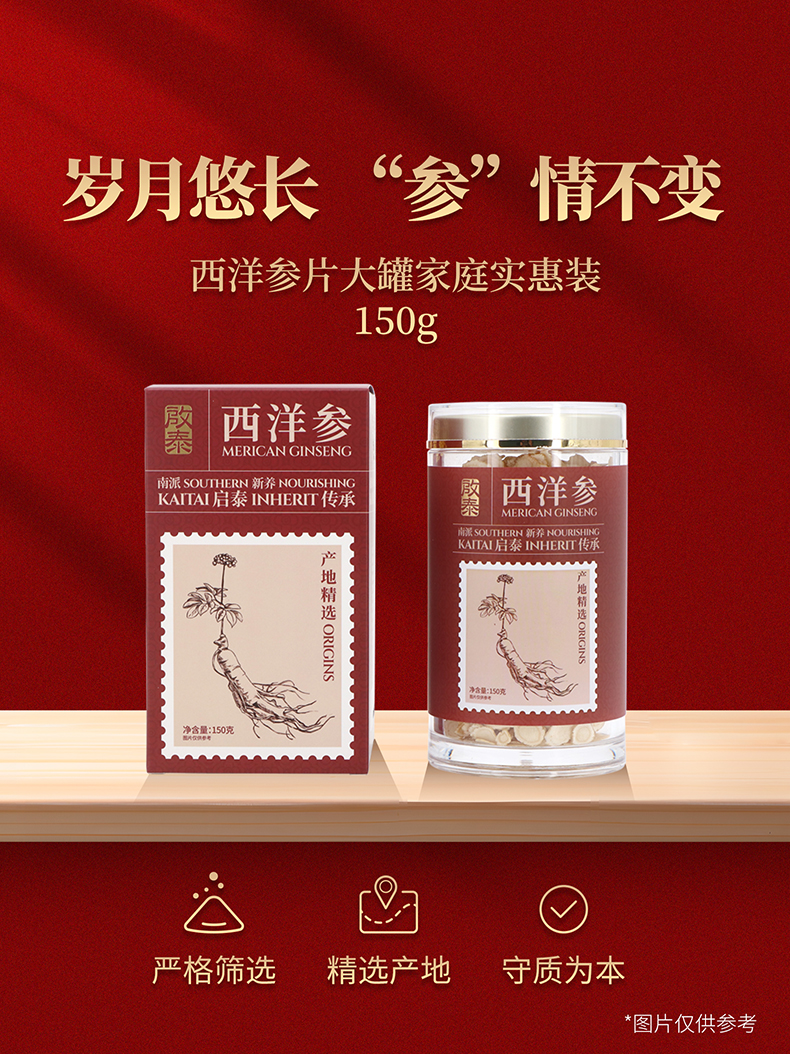 商品名称:启泰西洋参片大罐家庭实惠装150g