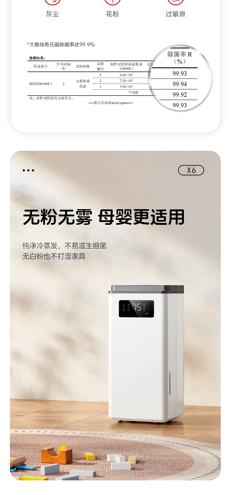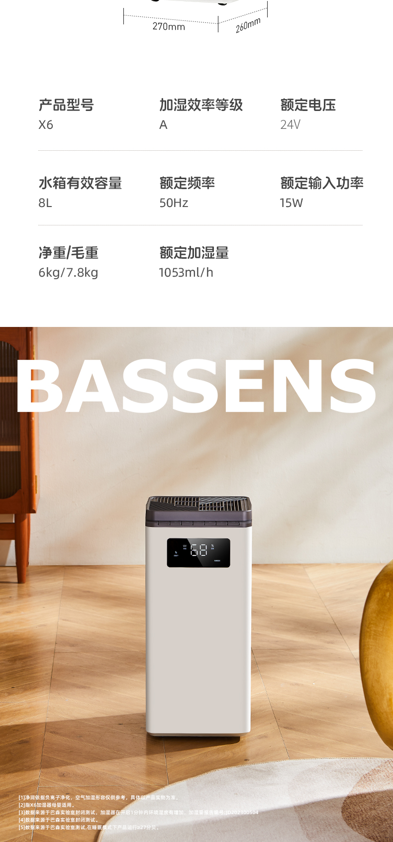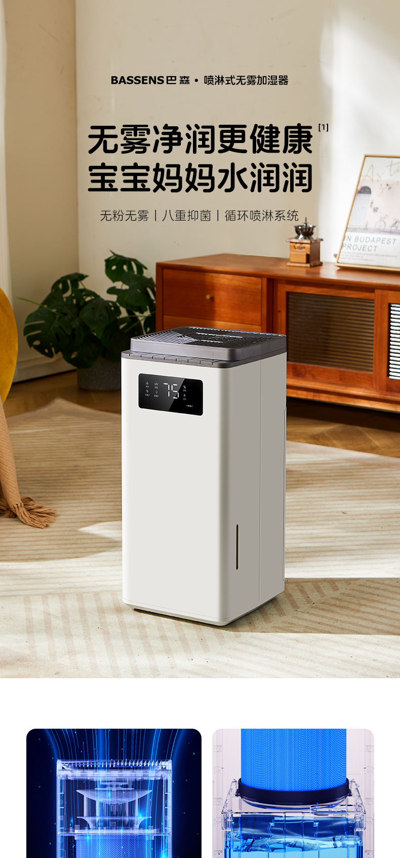商品名称:BASSENS/巴森喷淋式无雾加湿器X6