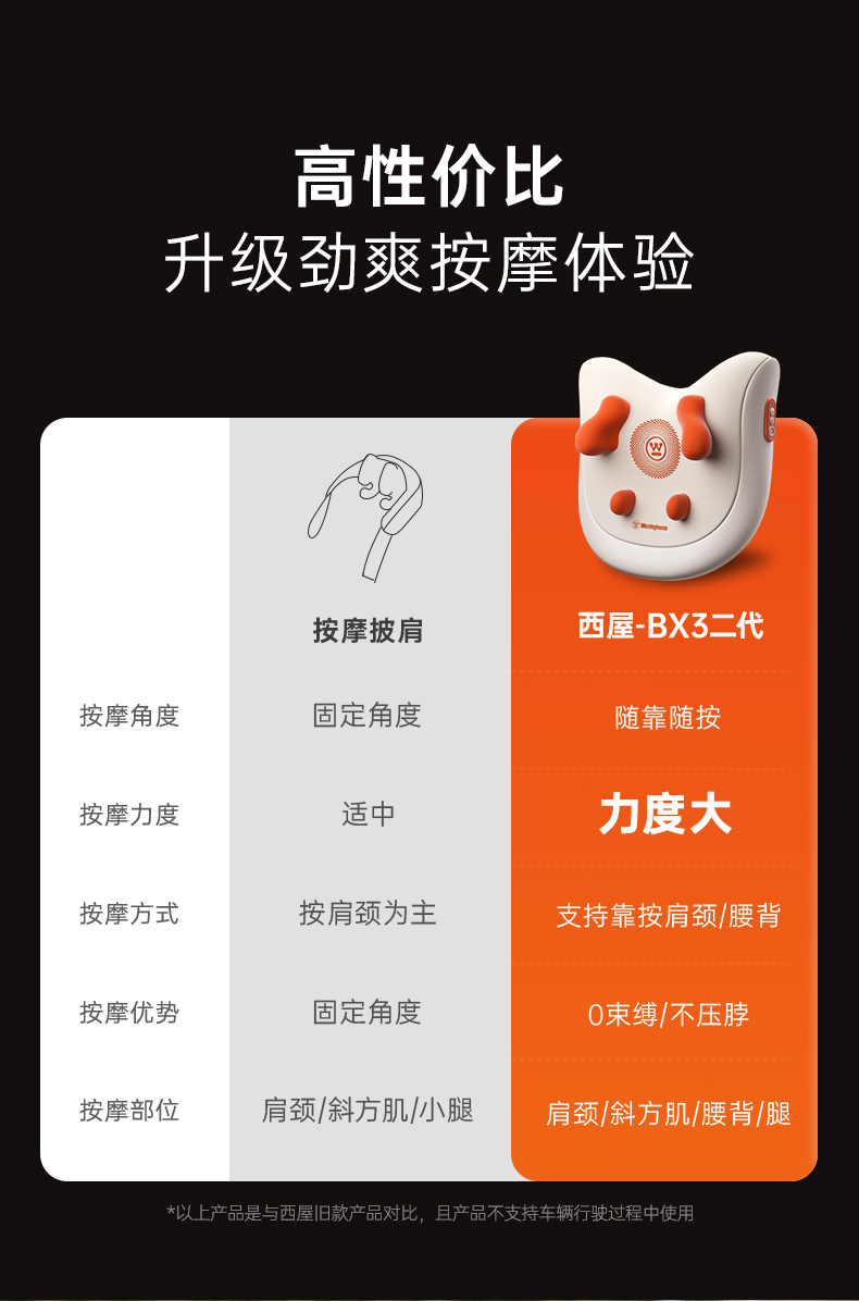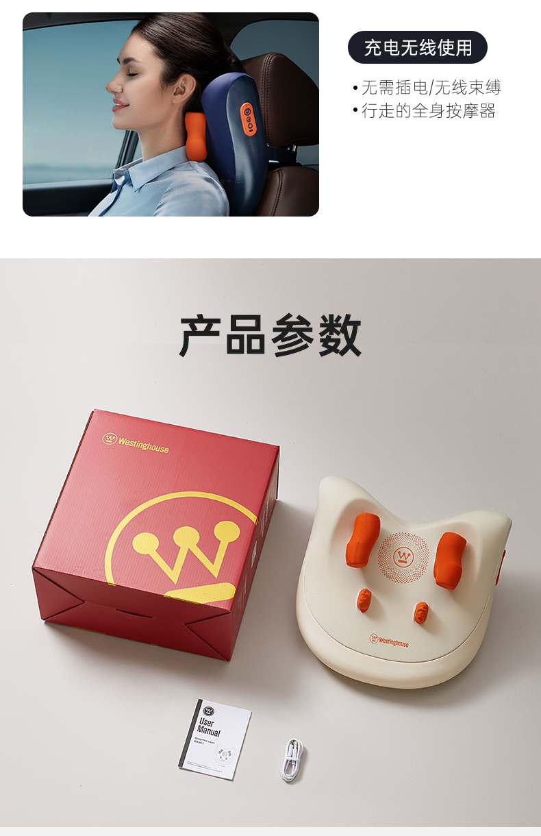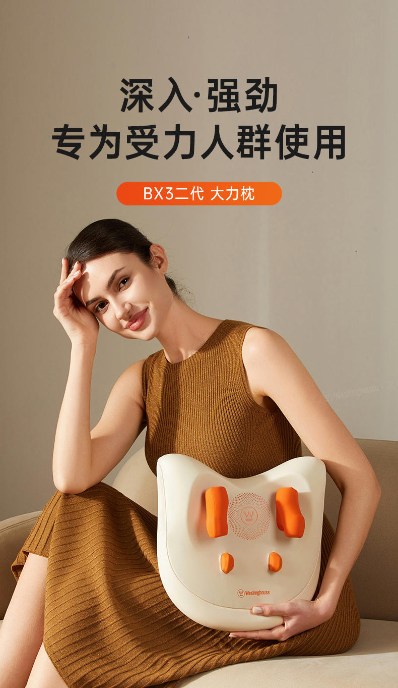 商品名称:Westinghouse/西屋按摩靠枕WCM-BX3-2