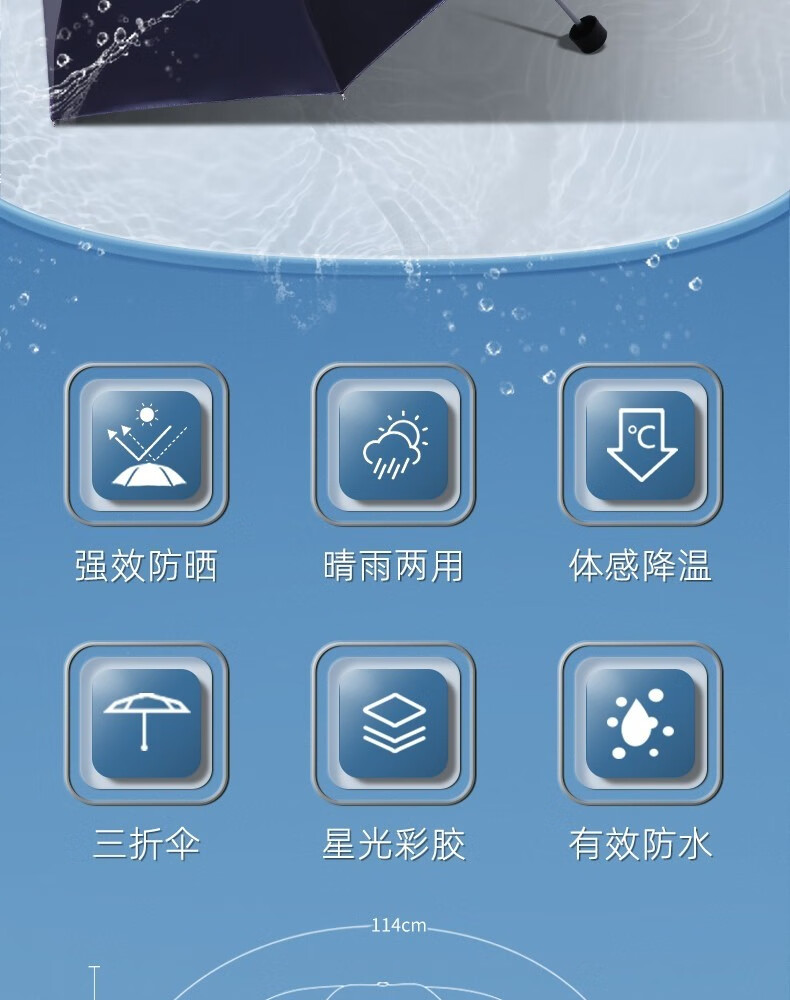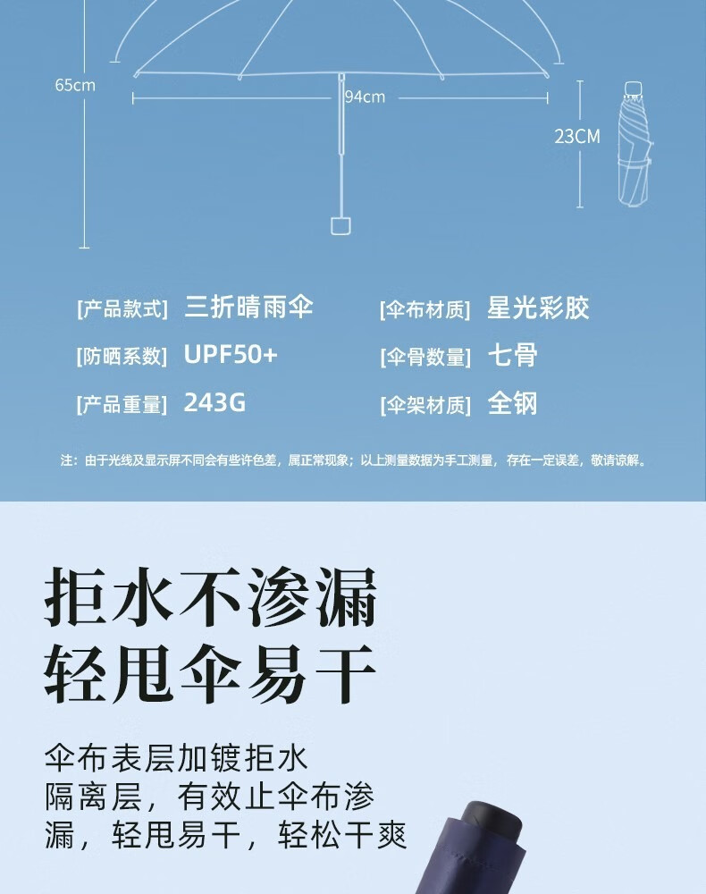 商品名称:天堂伞初夏系列三折晴雨伞-深藏青36155EZ