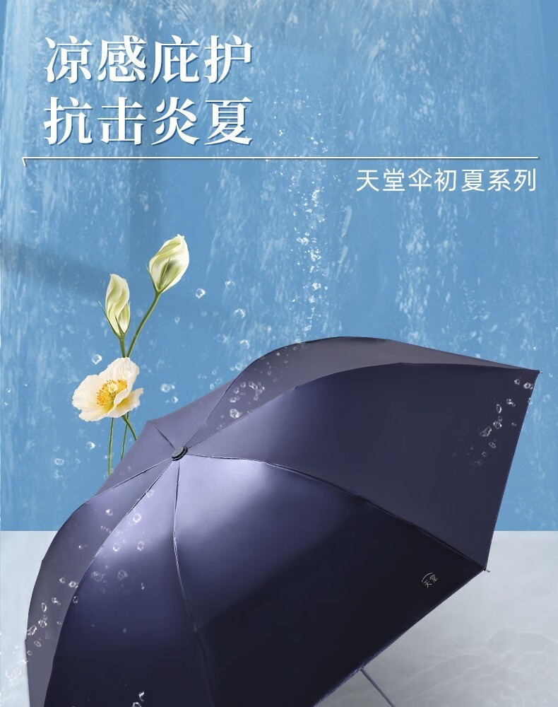 天堂伞初夏系列三折晴雨伞-深藏青36155EZ