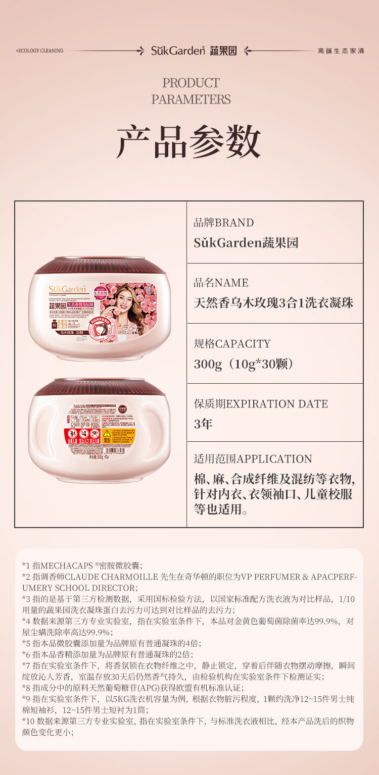 商品名称:SukGarden/蔬果园天然香乌木玫瑰3合1洗衣凝珠