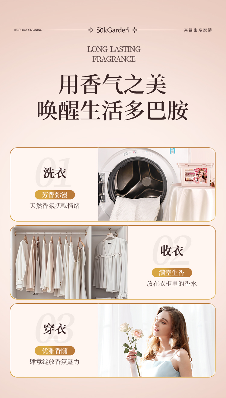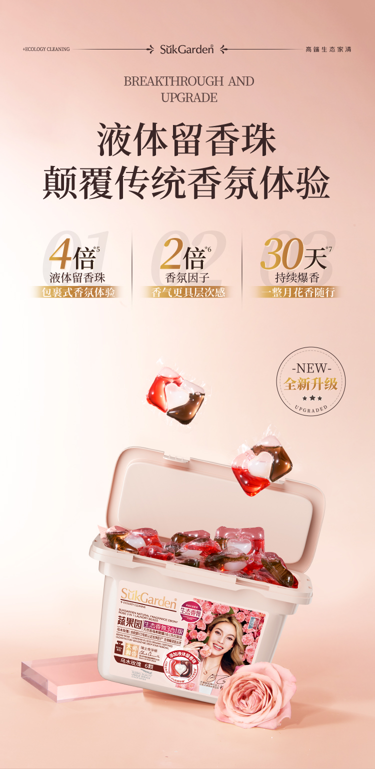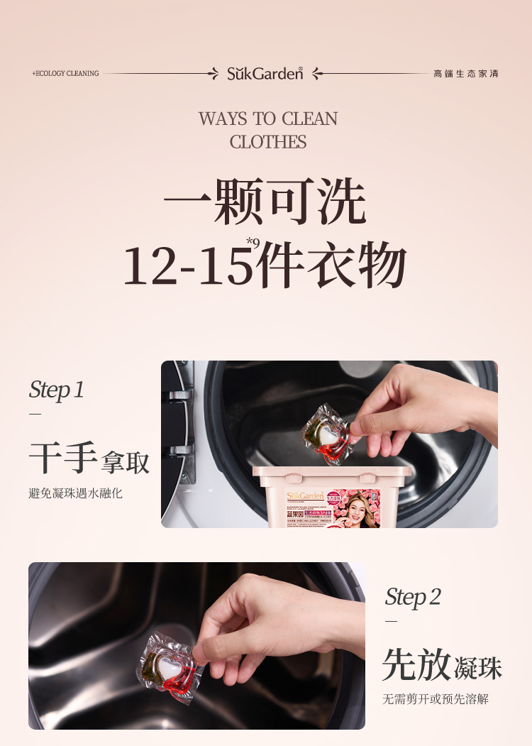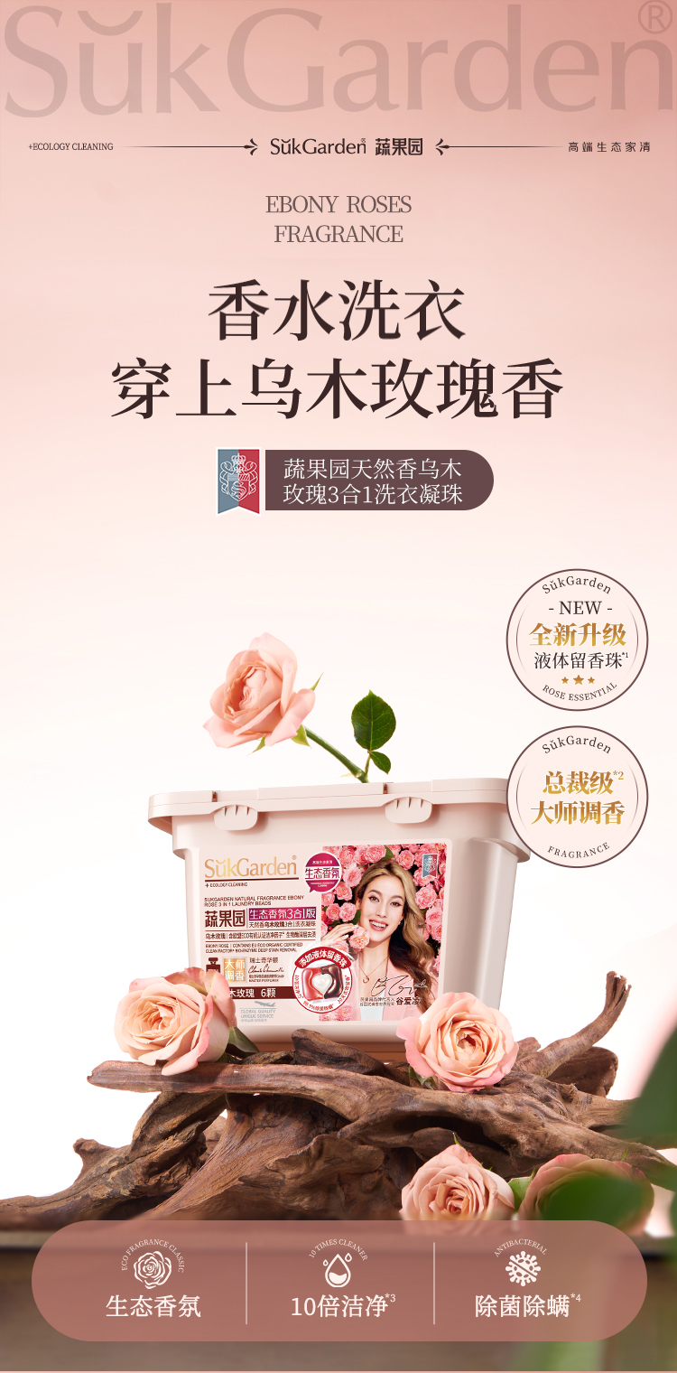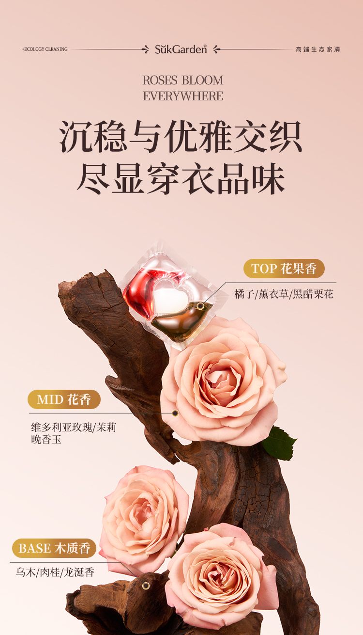 SukGarden/蔬果园天然香乌木玫瑰3合1洗衣凝珠