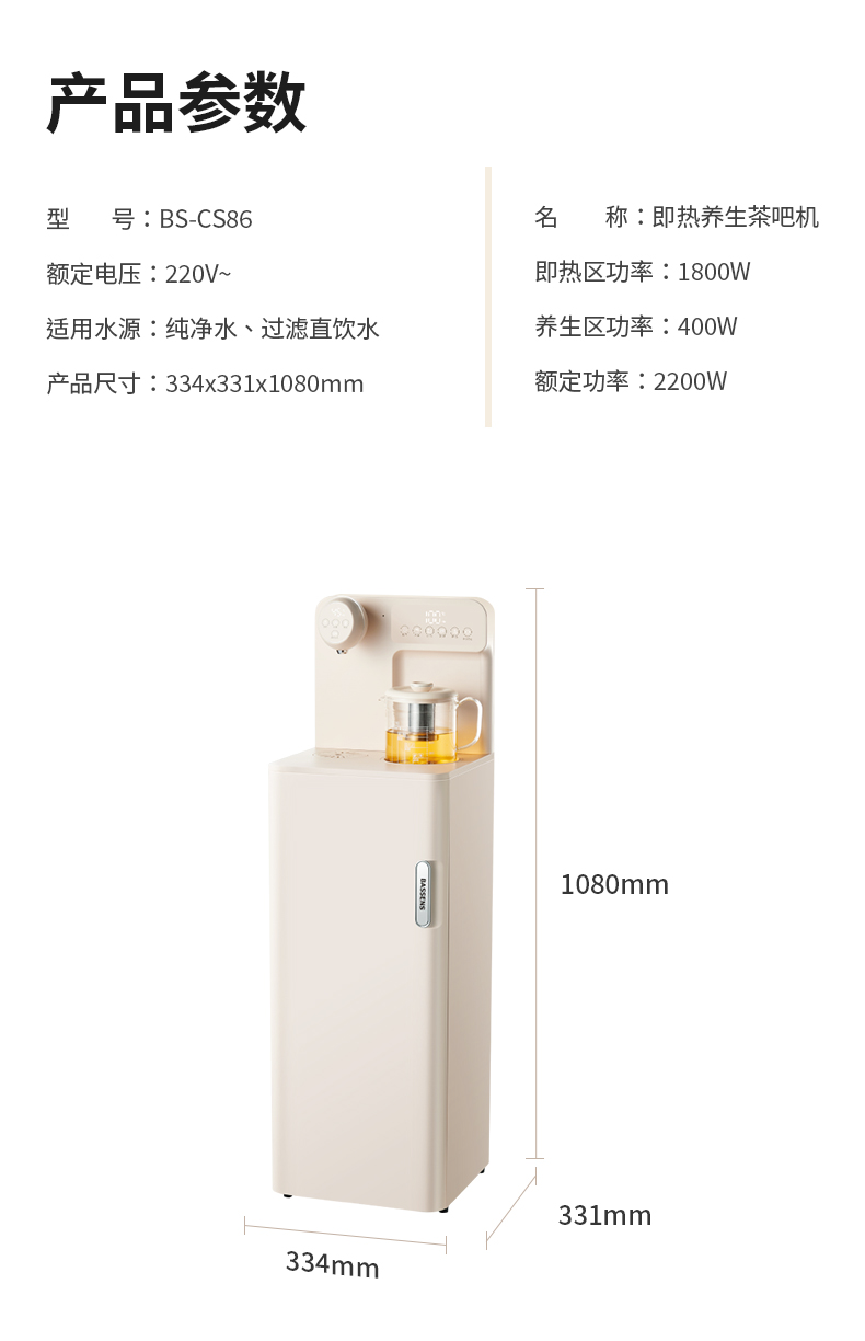商品名称:【顺丰配送】BASSENS/巴森即热养生茶吧机