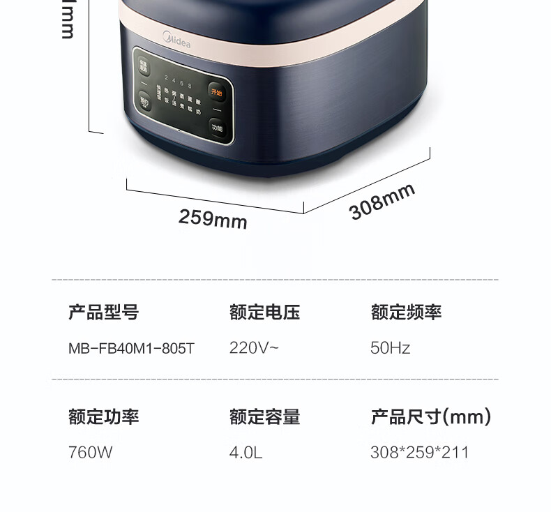 商品名称:Midea/美的4升智能电饭煲MB-FB40M1-805T
