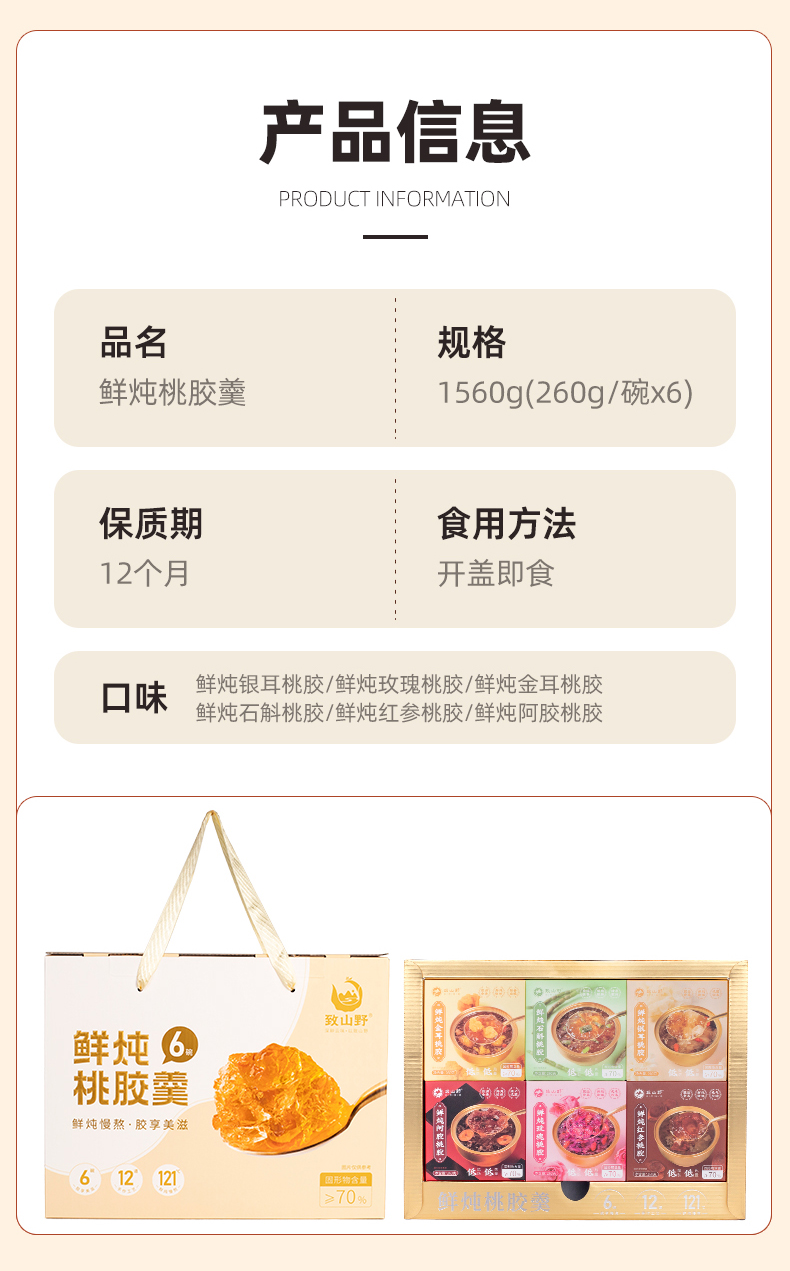 商品名称:致山野鲜炖桃胶羹礼盒1560g