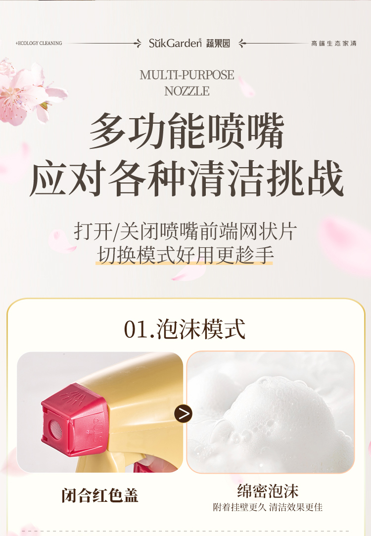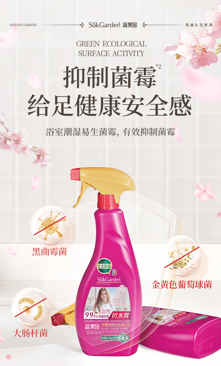 SukGarden/蔬果园繁樱泡泡浴室清洁剂600g