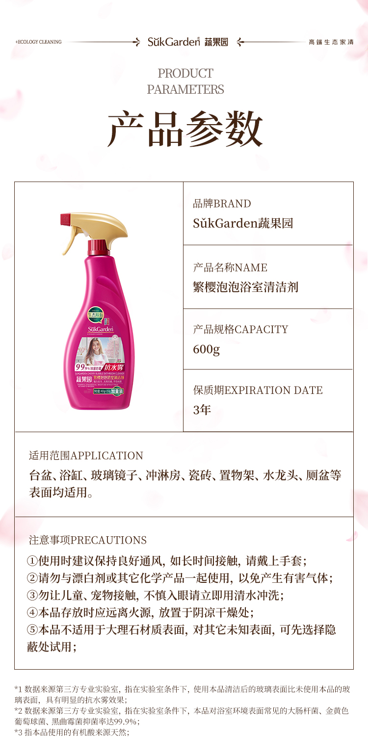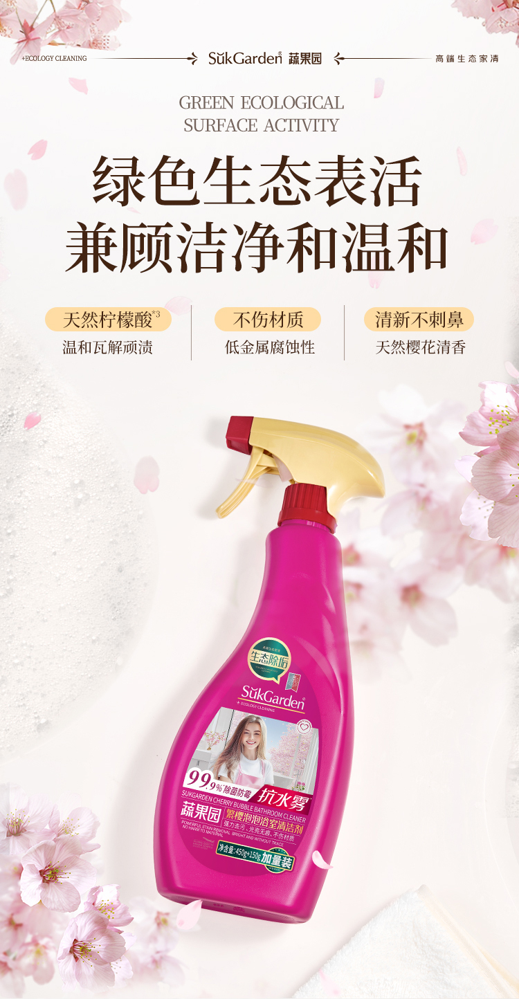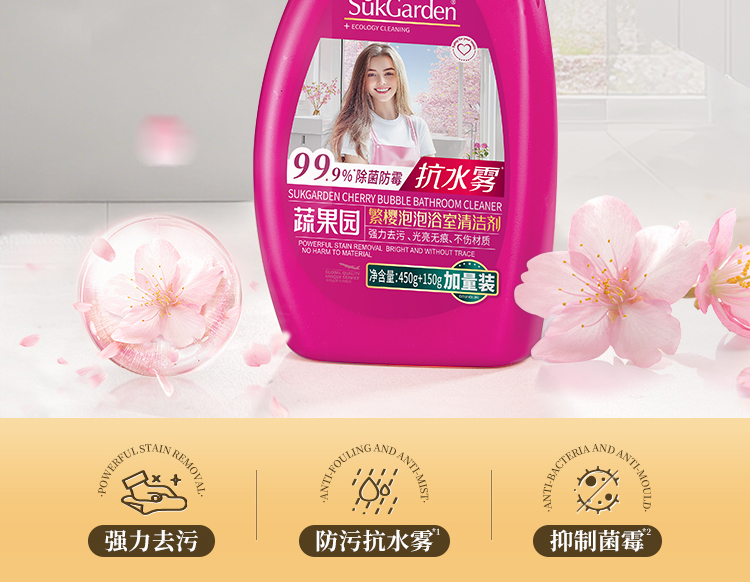 商品名称:SukGarden/蔬果园繁樱泡泡浴室清洁剂600g