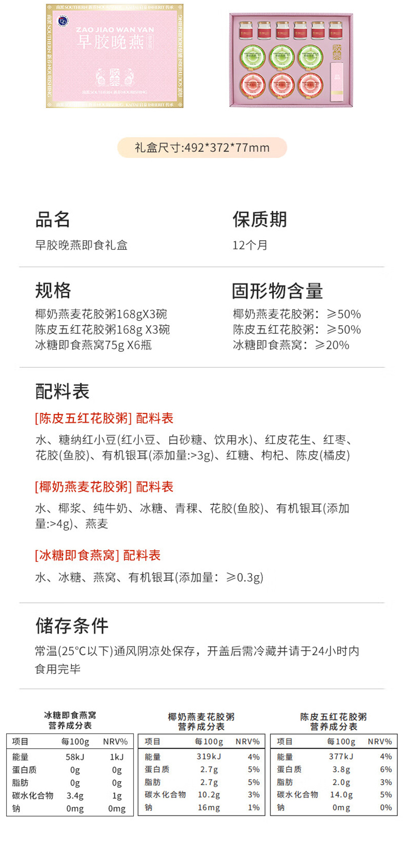 商品名称:启泰早胶晚燕鎏金版滋养礼盒1458g