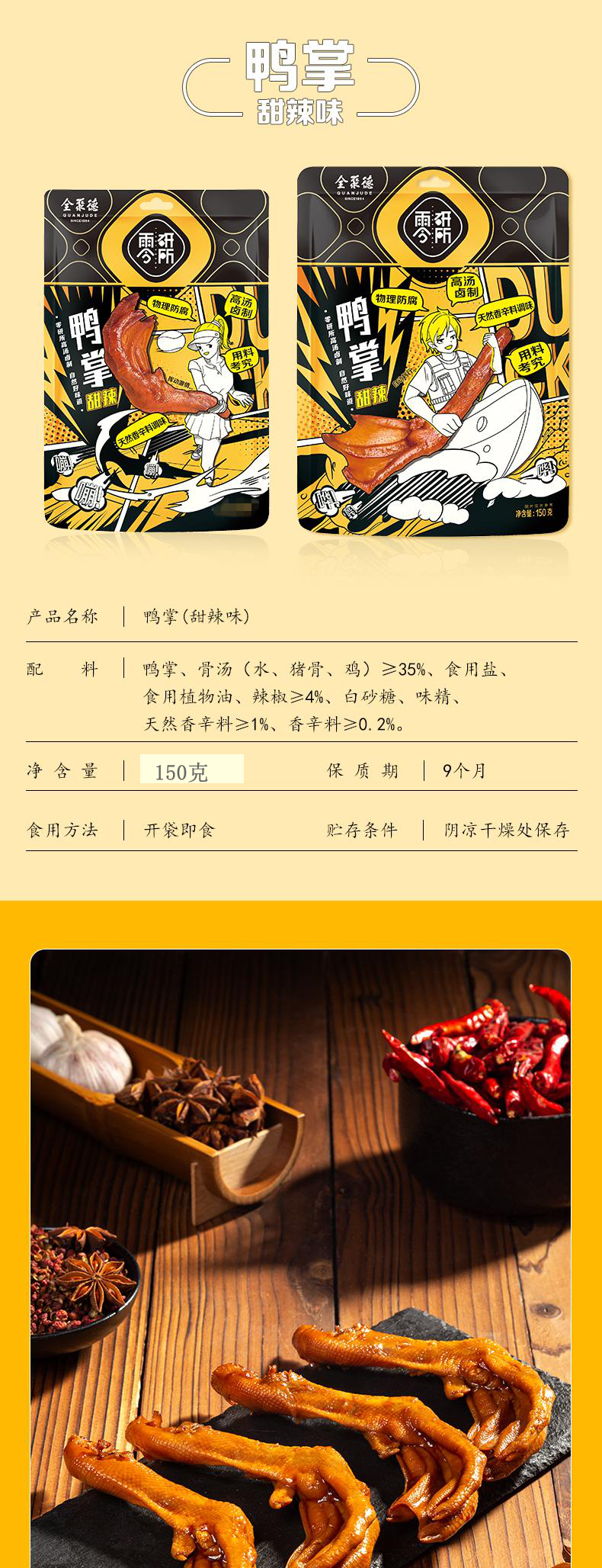 商品名称:全聚德零研所甜辣味鸭掌150g*3袋