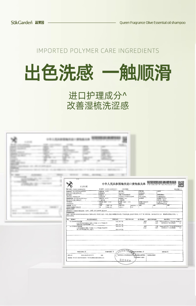商品名称:SukGarden/蔬果园皇后香橄榄精油洗发乳