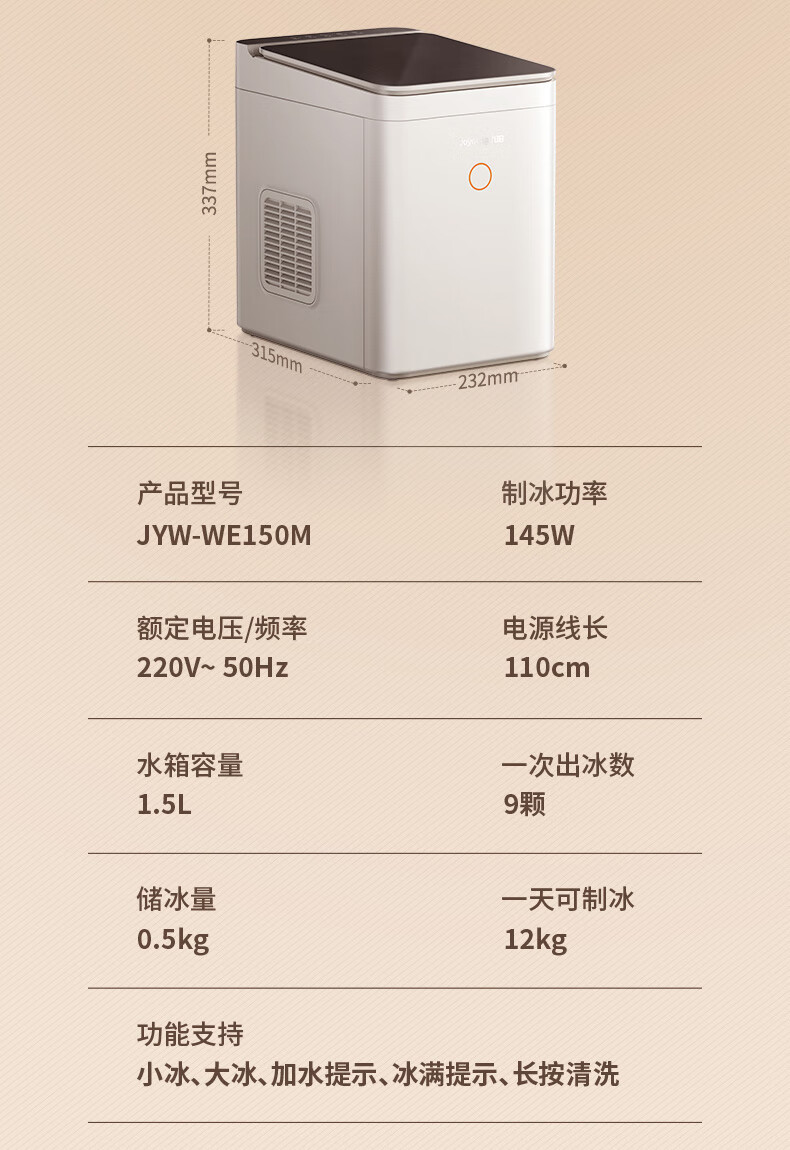 商品名称:Joyoung/九阳1.5升抗菌制冰机JYW-WE150M
