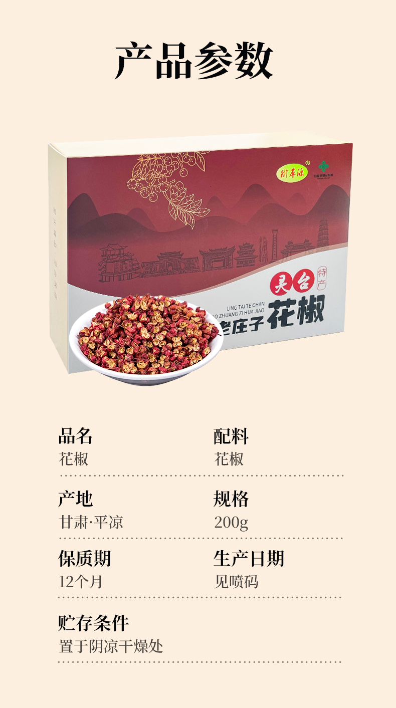 商品名称:陇萃源灵台花椒200g