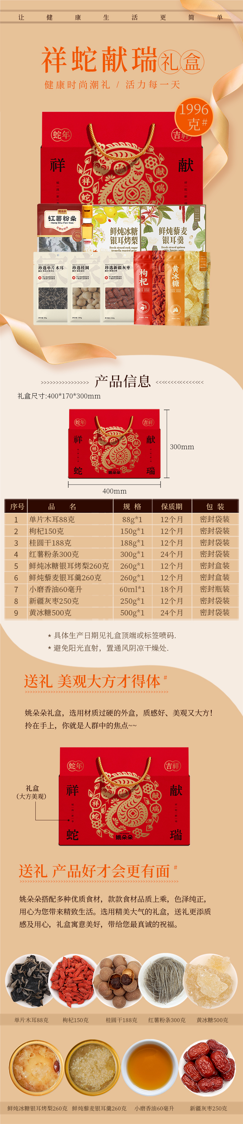 商品名称:姚朵朵祥蛇献瑞食品礼盒1996g+60ml