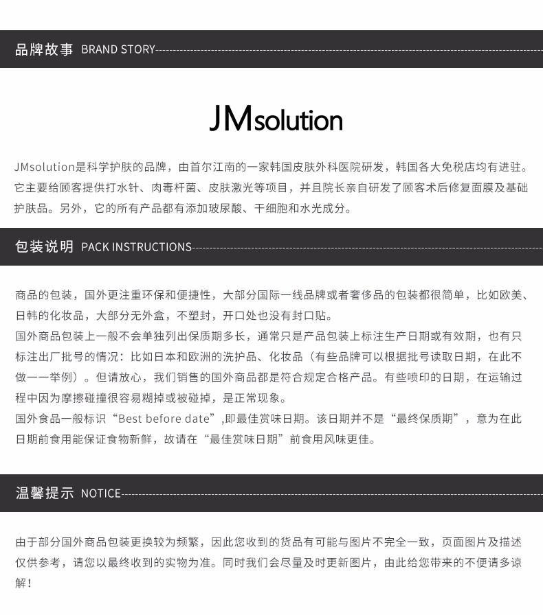 商品名称:JMSOLUTION 水光蜂蜜面膜 10片