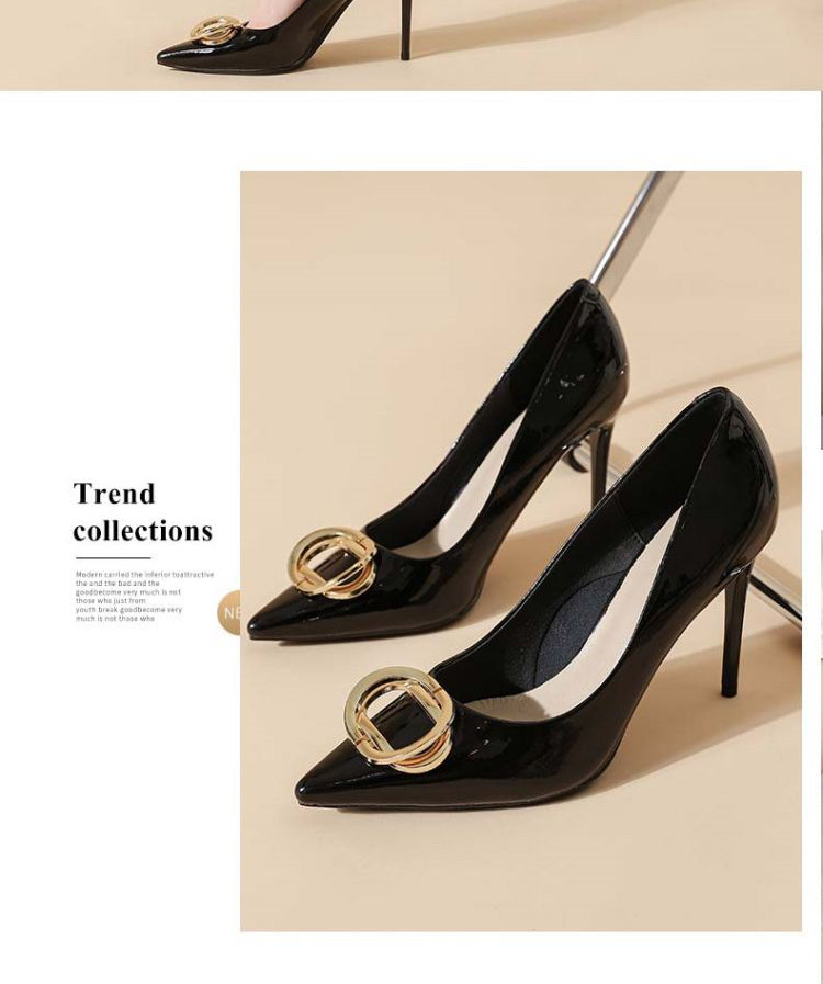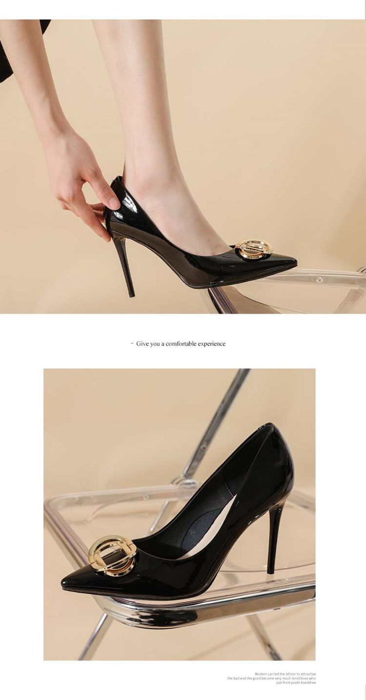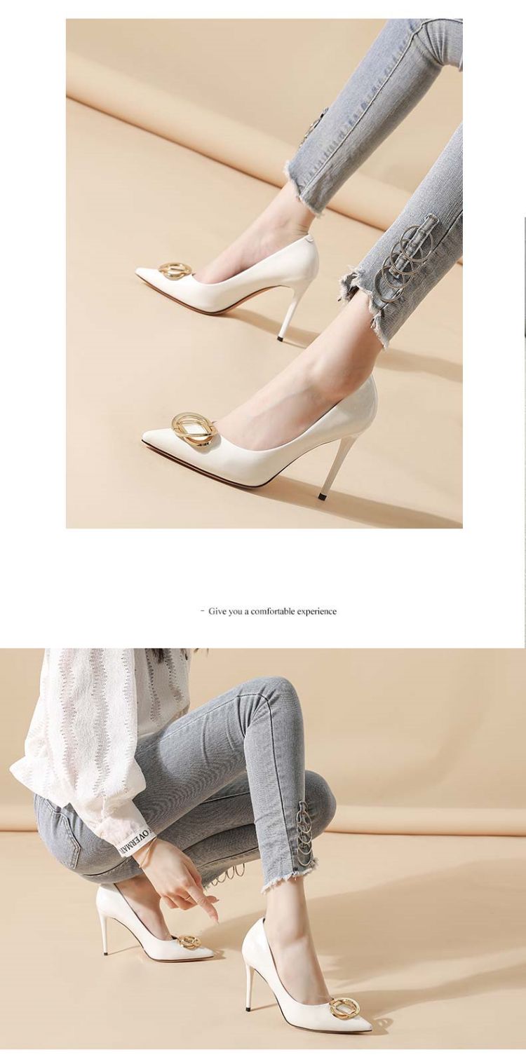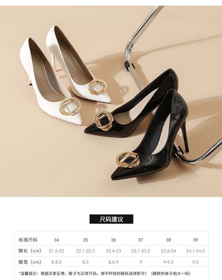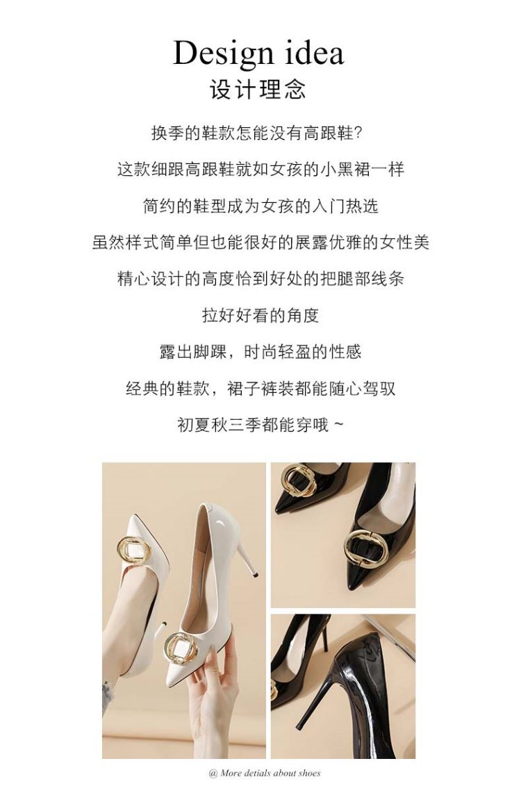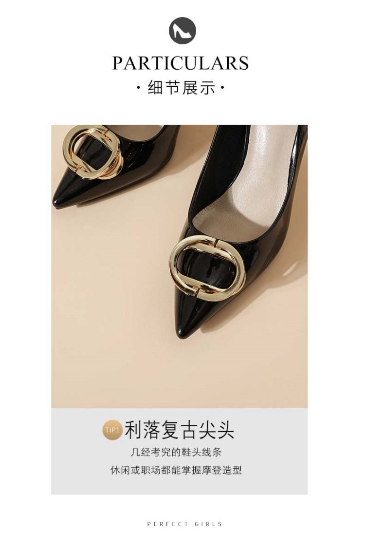 商品名称:夏季女圆形扣单鞋尖头高跟鞋法式复古通勤鞋时装鞋百搭细跟 487959