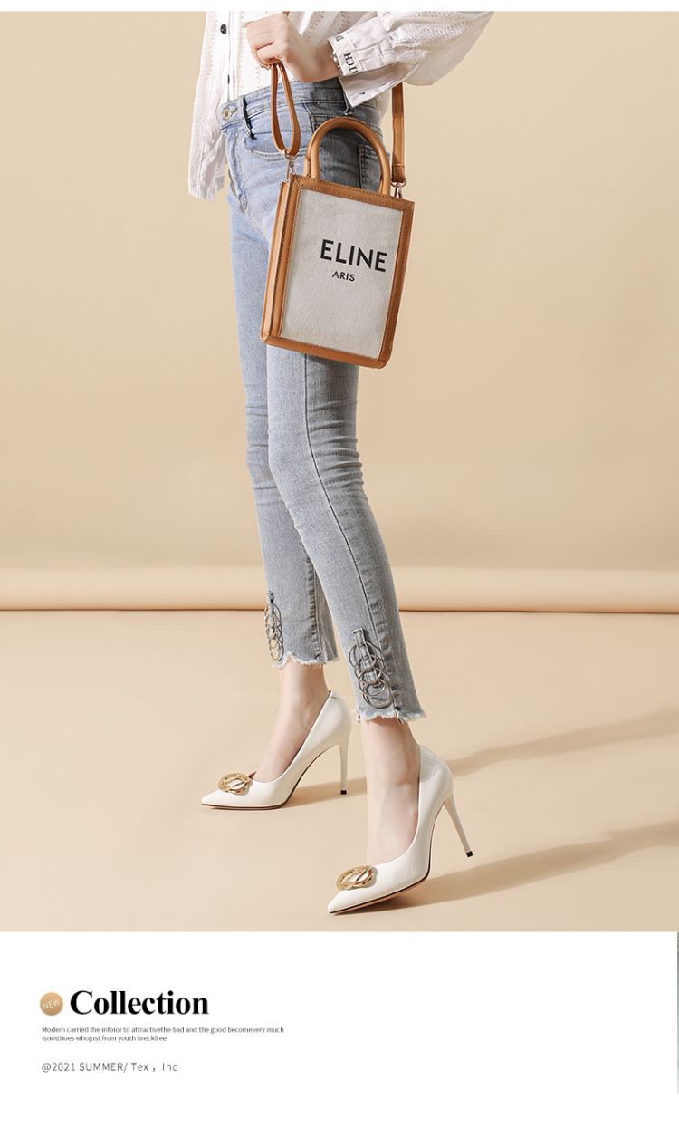 夏季女圆形扣单鞋尖头高跟鞋法式复古通勤鞋时装鞋百搭细跟 487959