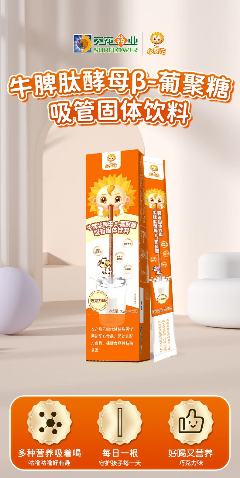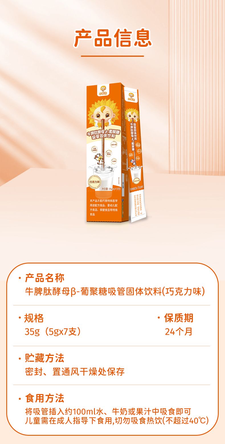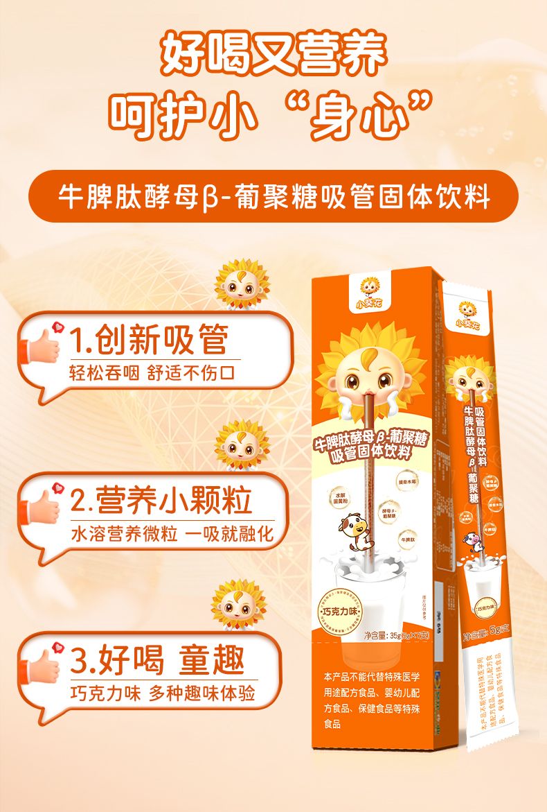 商品名称:小葵花 牛脾肽酵母β-葡聚糖吸管固体饮料吸吸乐 5g×7支/盒 巧克力味