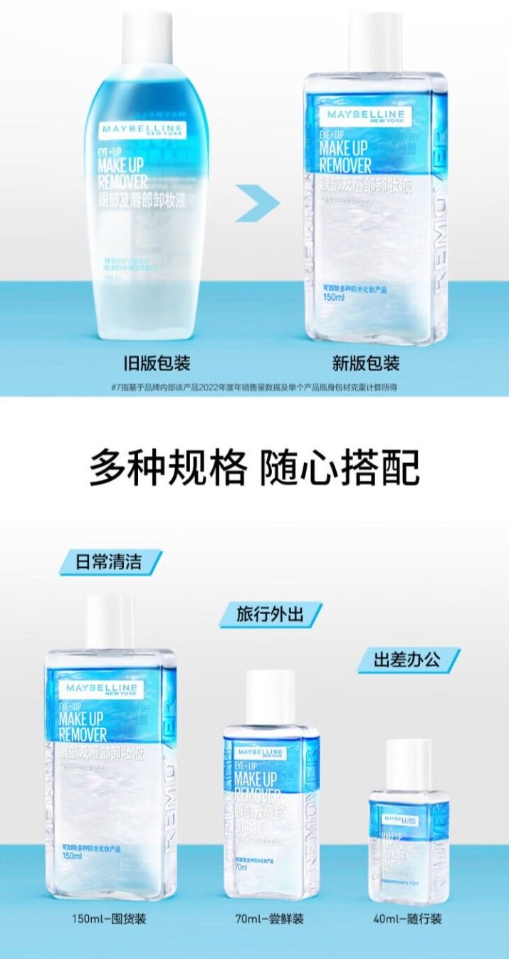 商品名称:Maybelline/美宝莲 眼部及唇部卸妆液 70ml 方瓶