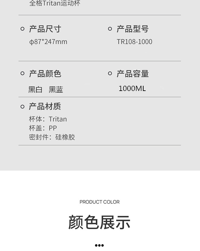 商品名称:Quange/全格1000毫升Tritan运动杯TR108-1000