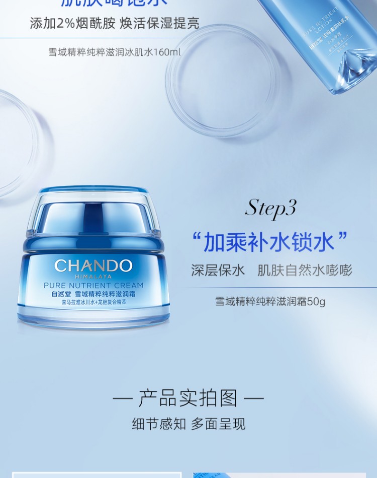 商品名称:CHANDO/自然堂雪域倍润保湿护肤三件套(洁面125g+水160ml+霜50g)