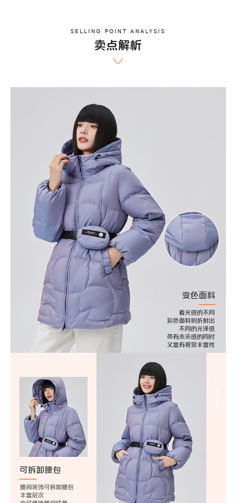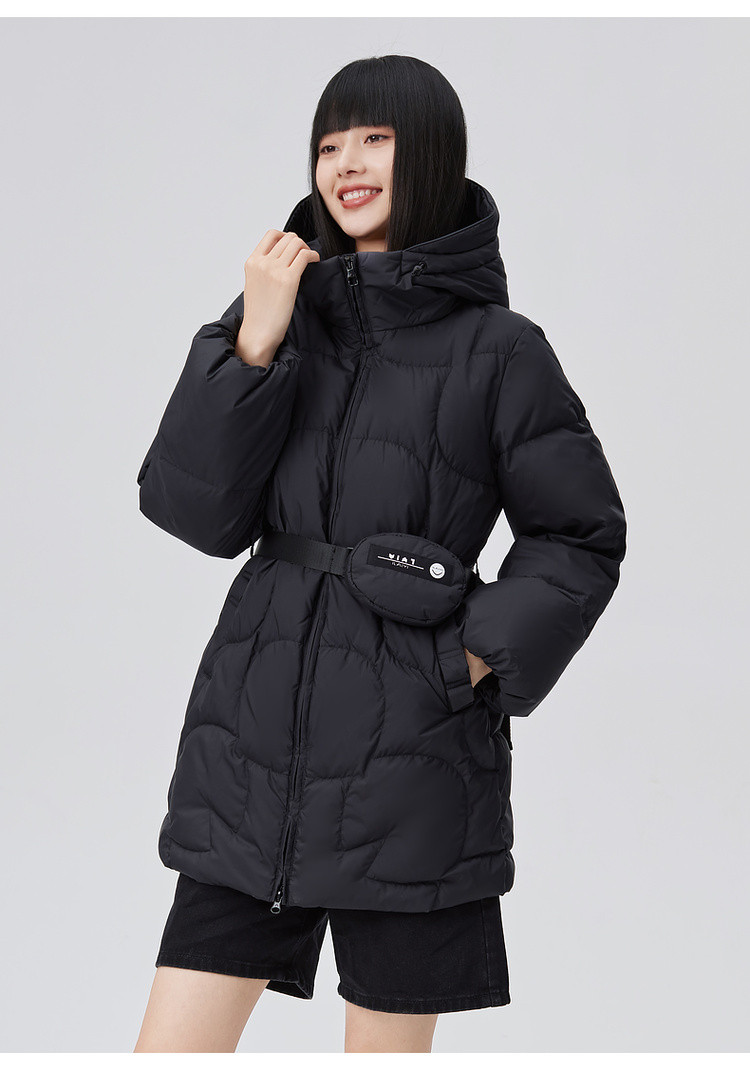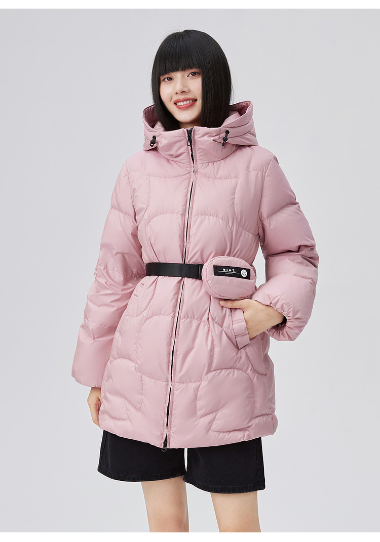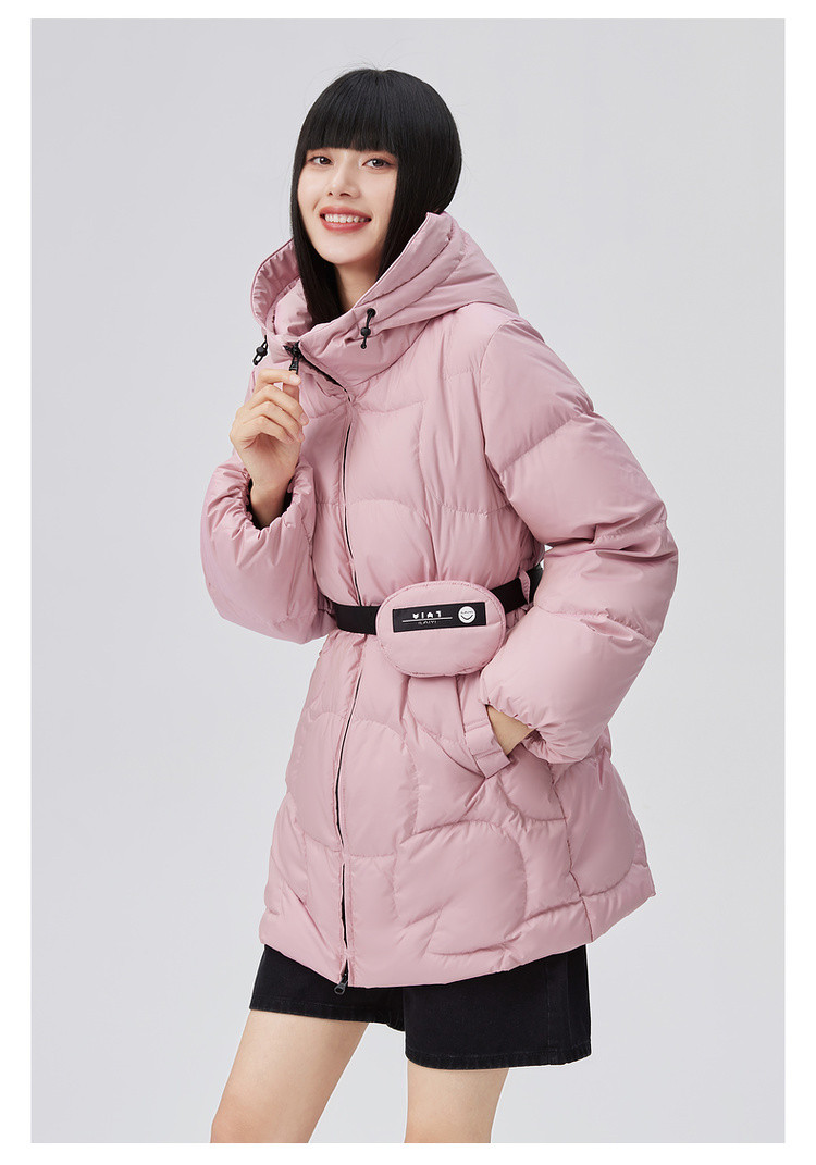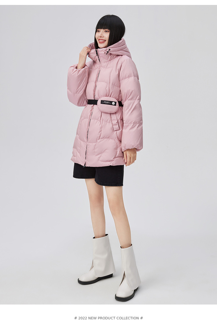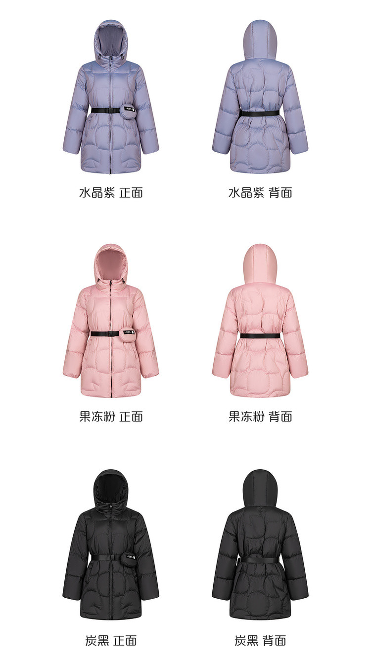 商品名称:【90鸭绒】连帽腰包装饰羽绒服女短款外套女 088918