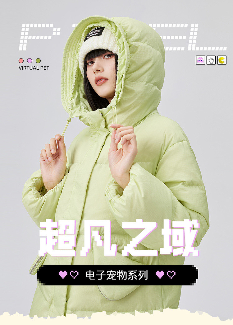 【90鸭绒】连帽腰包装饰羽绒服女短款外套女 088918