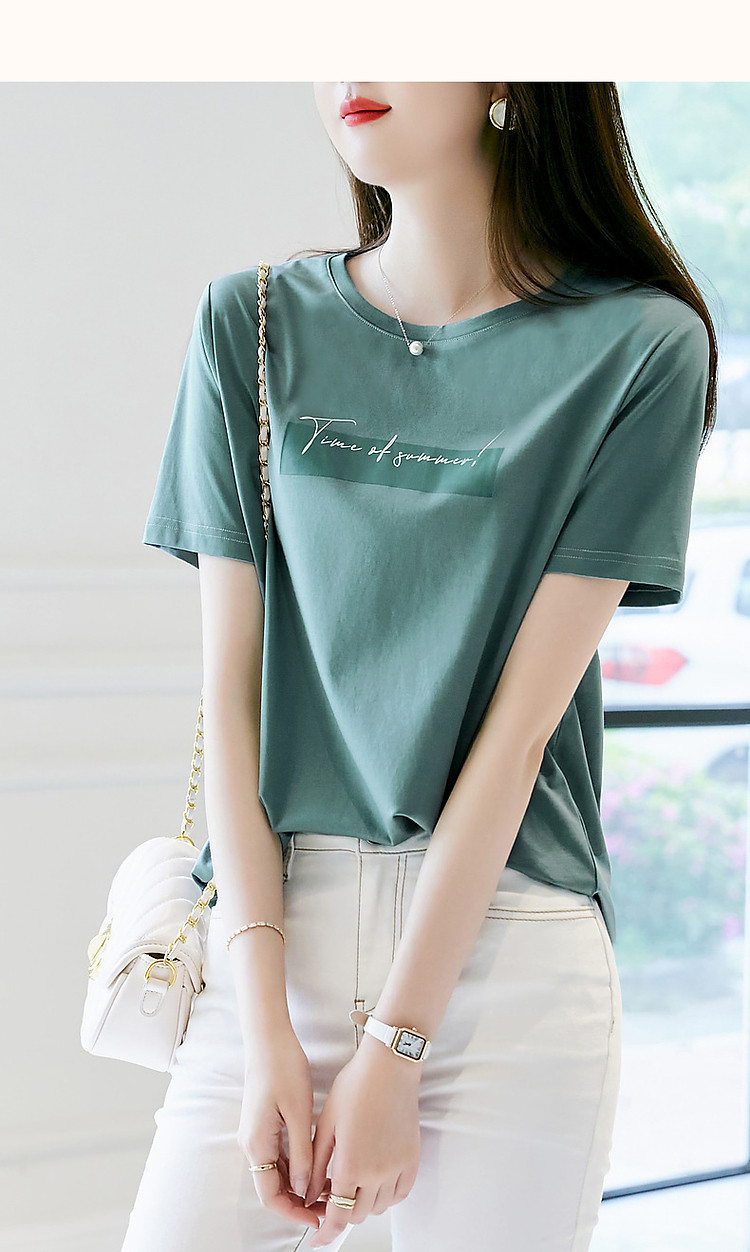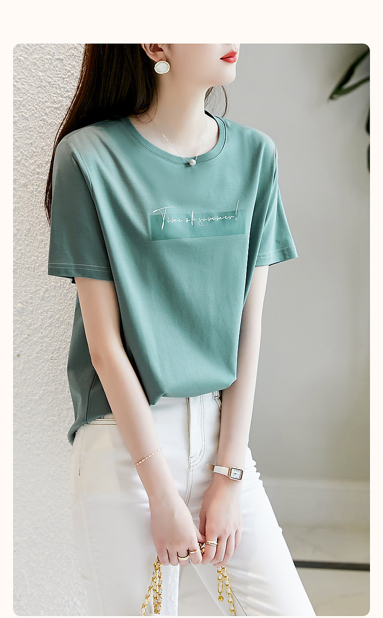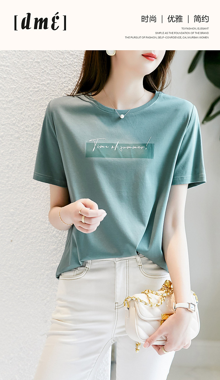 【baby肌系列】夏季轻奢丝光棉短袖t恤字母印花藏肉女式t恤 264385