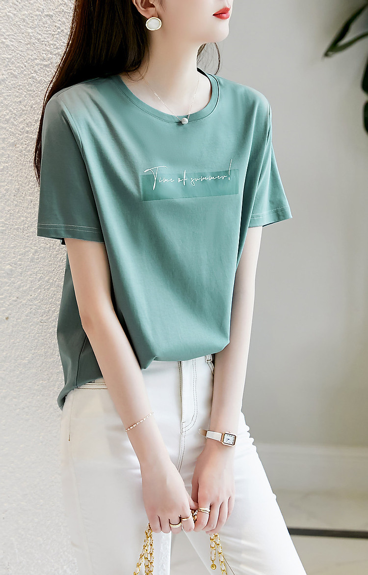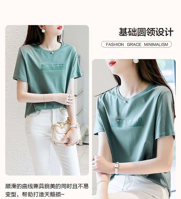商品名称:【baby肌系列】夏季轻奢丝光棉短袖t恤字母印花藏肉女式t恤 264385