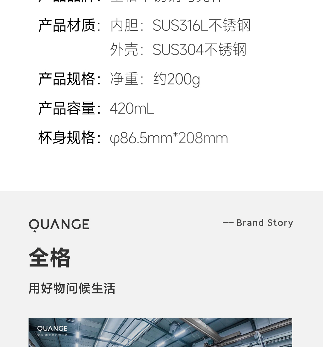 商品名称:Quange/全格420毫升不锈钢马克杯MK101-420