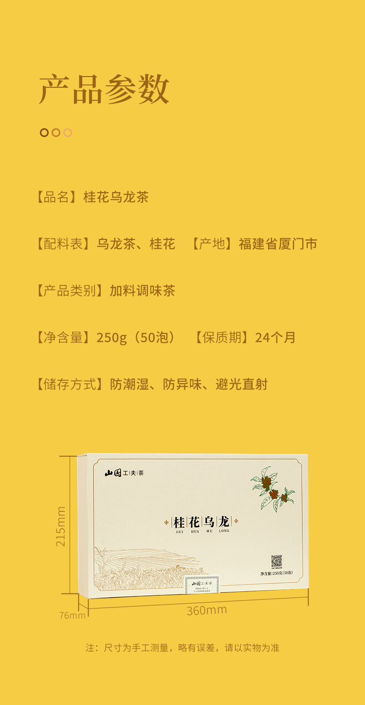 商品名称:山国工夫茶桂花乌龙茶礼盒250g