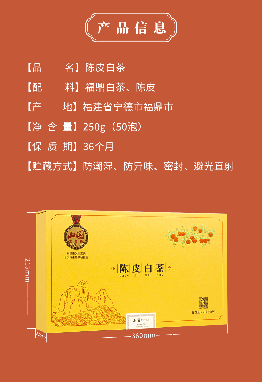 商品名称:山国工夫茶陈皮白茶礼盒250g