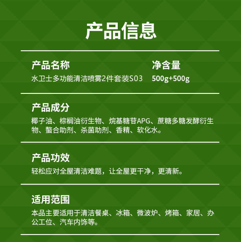商品名称:水卫士多功能清洁喷雾两件套1kg S03