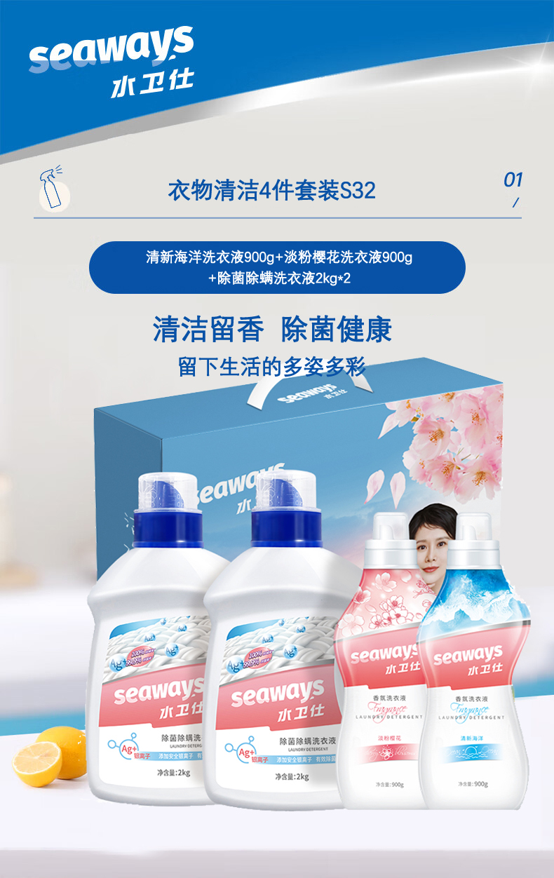 商品名称:水卫士衣物清洁四件套5.8kg S32