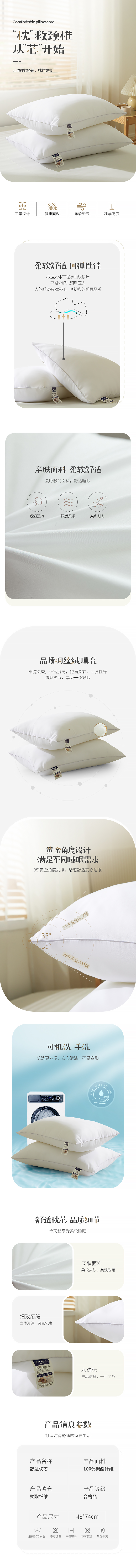 商品名称:GRACE/洁丽雅纯白舒适舒适枕芯2只JLY-3601