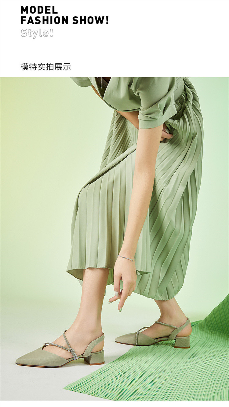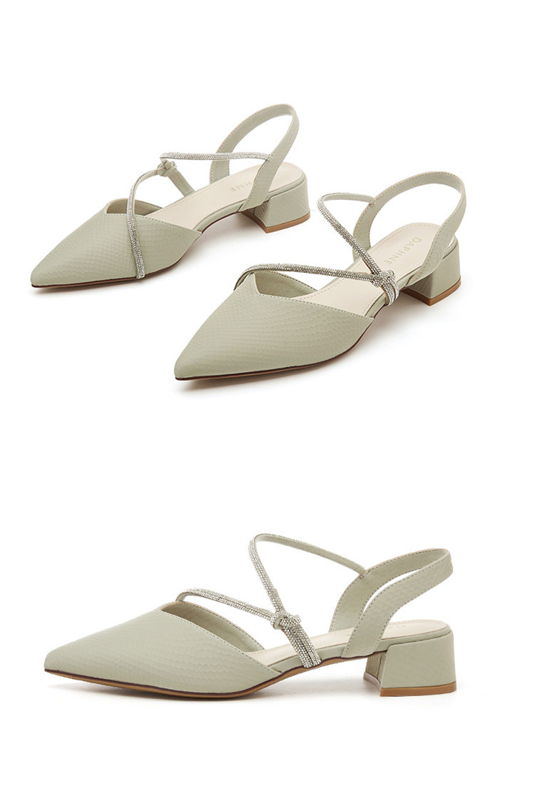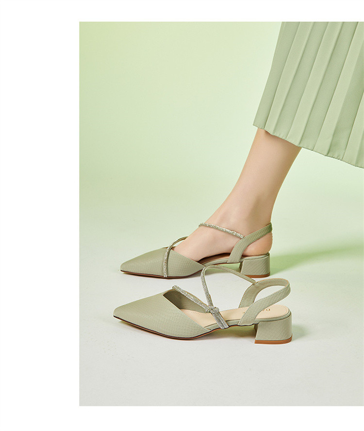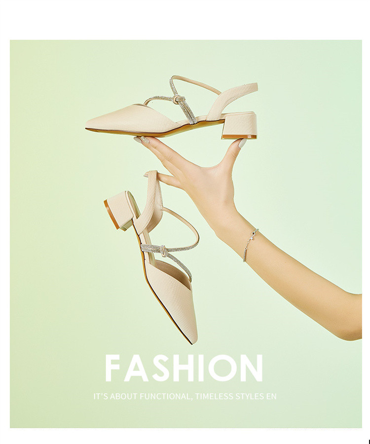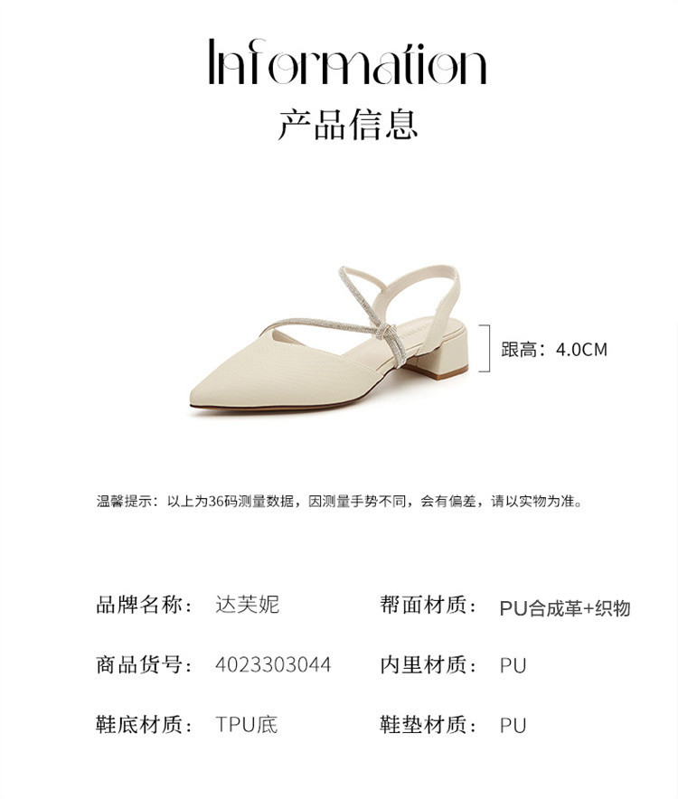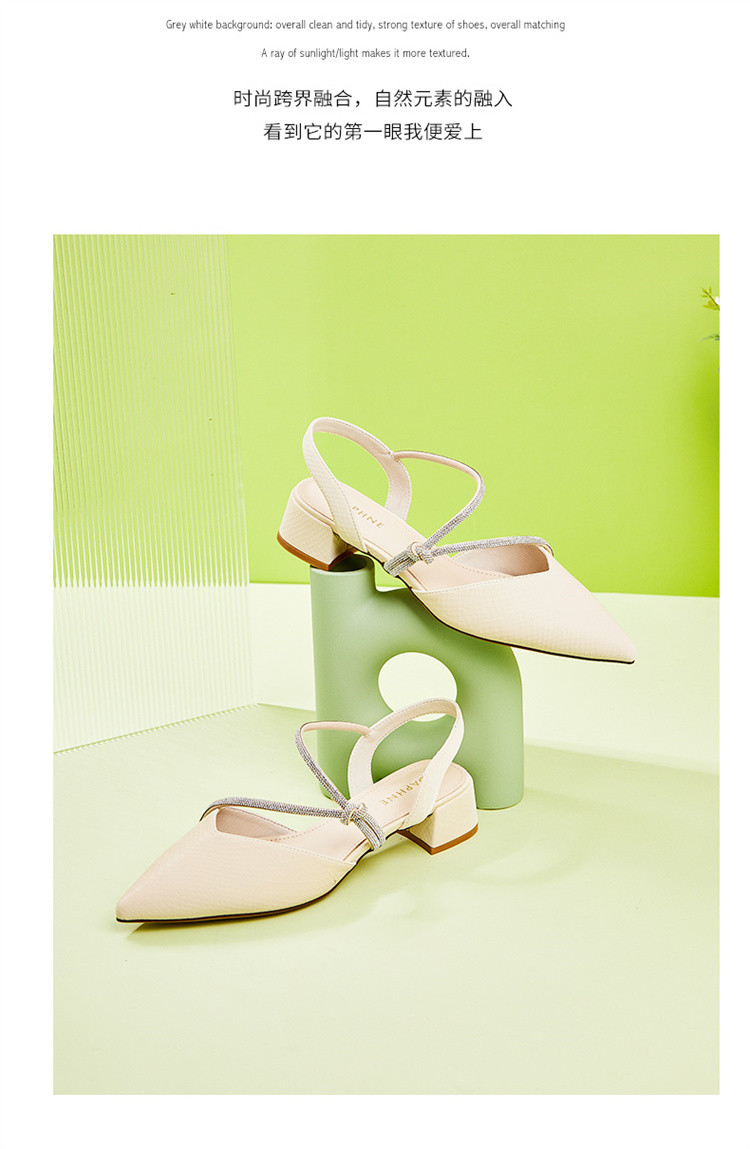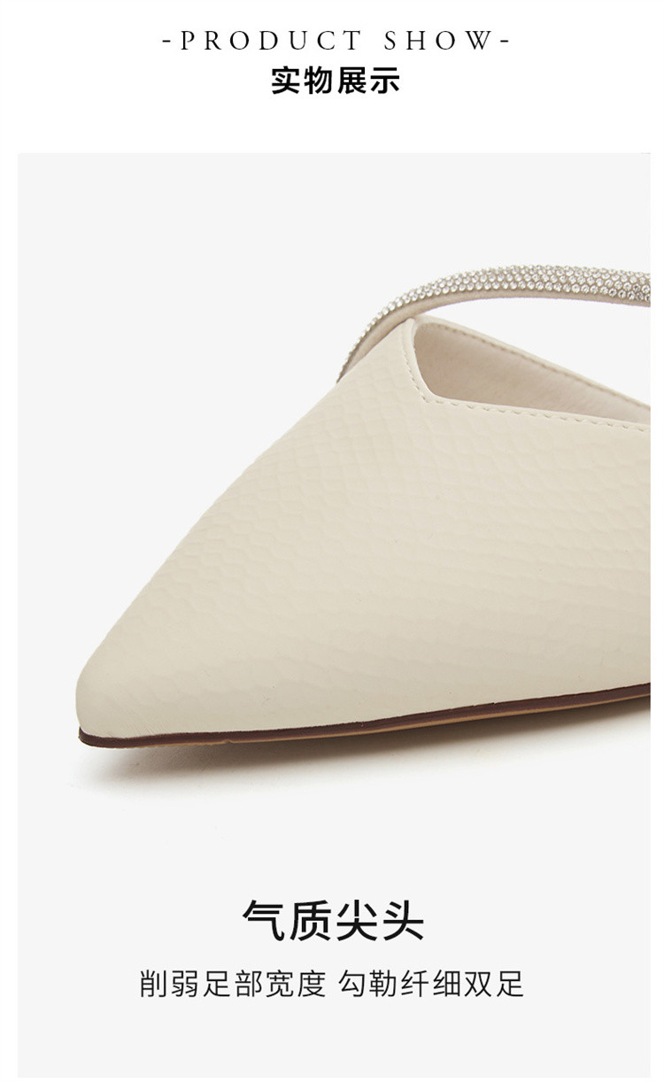 商品名称:夏季时装鞋一字带凉鞋尖头粗跟后空凉鞋女水钻细闪女单鞋通勤鞋子 876887