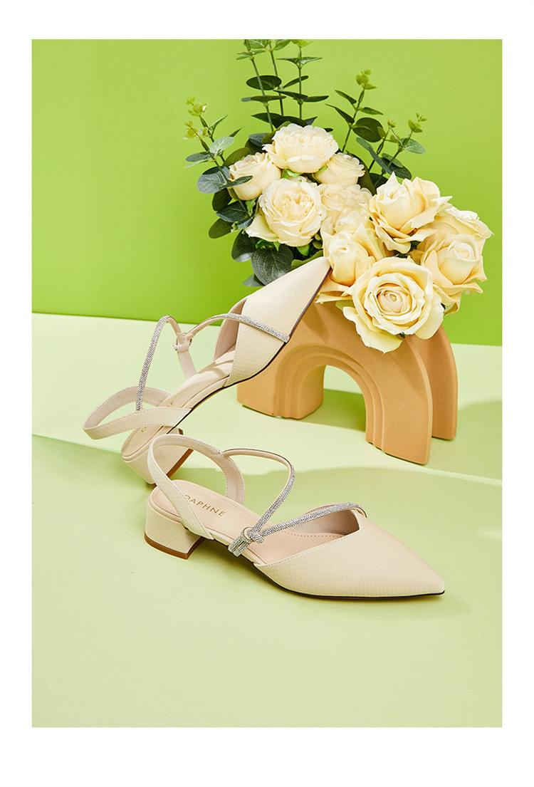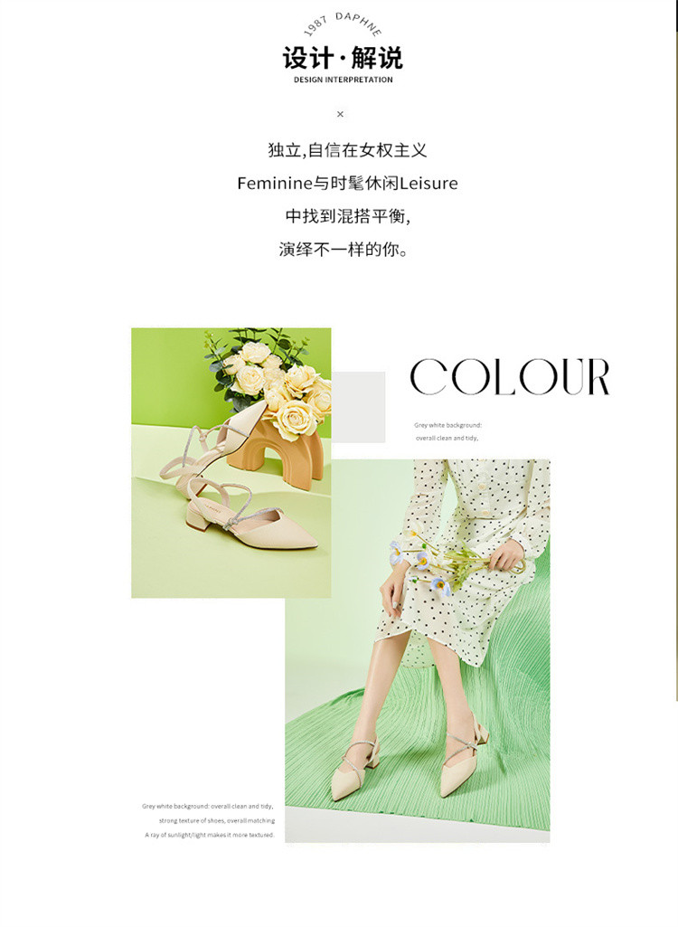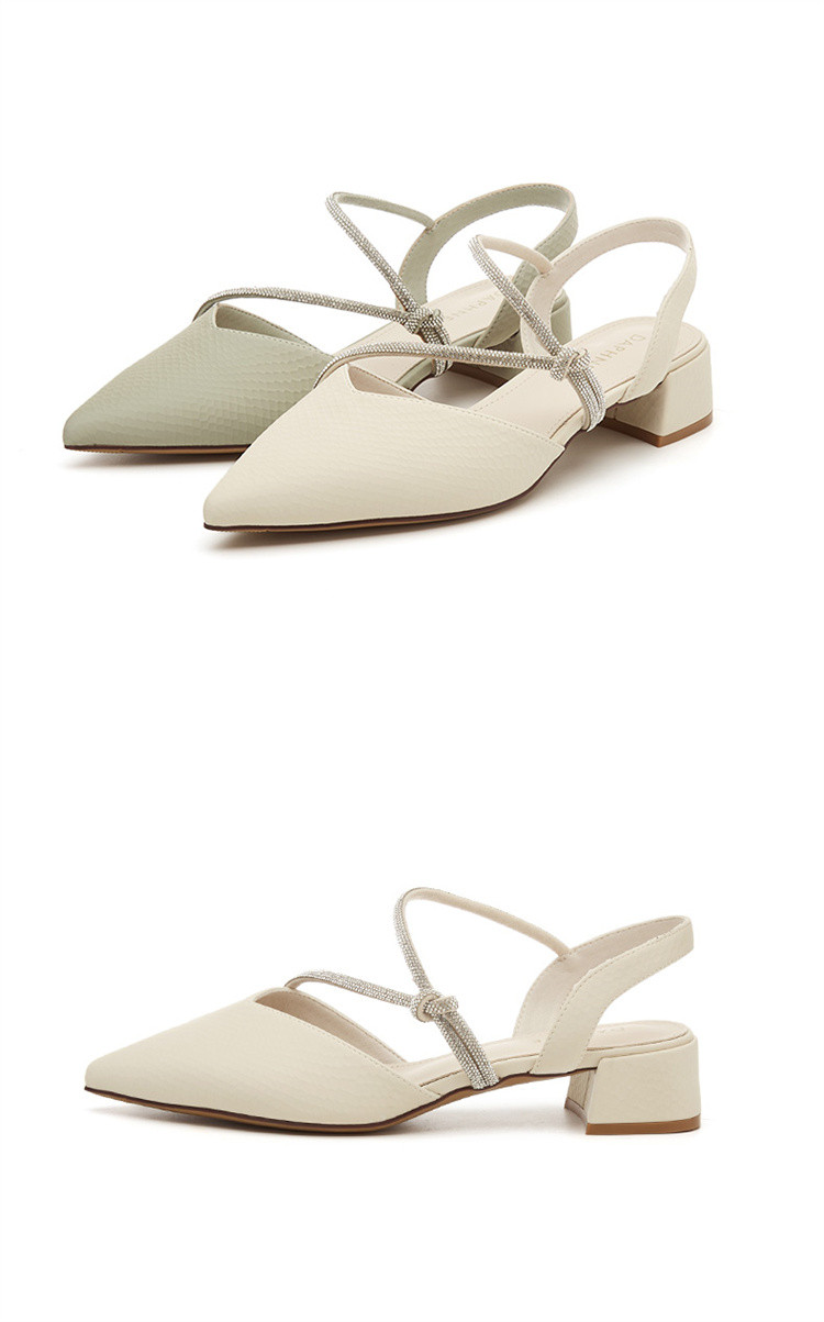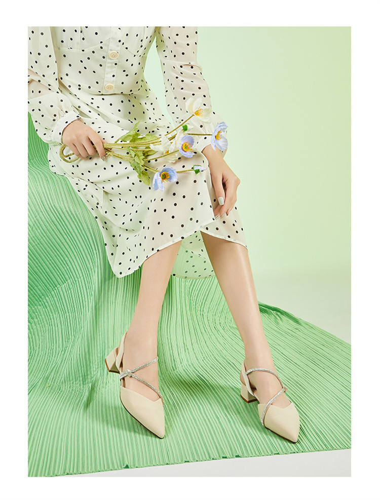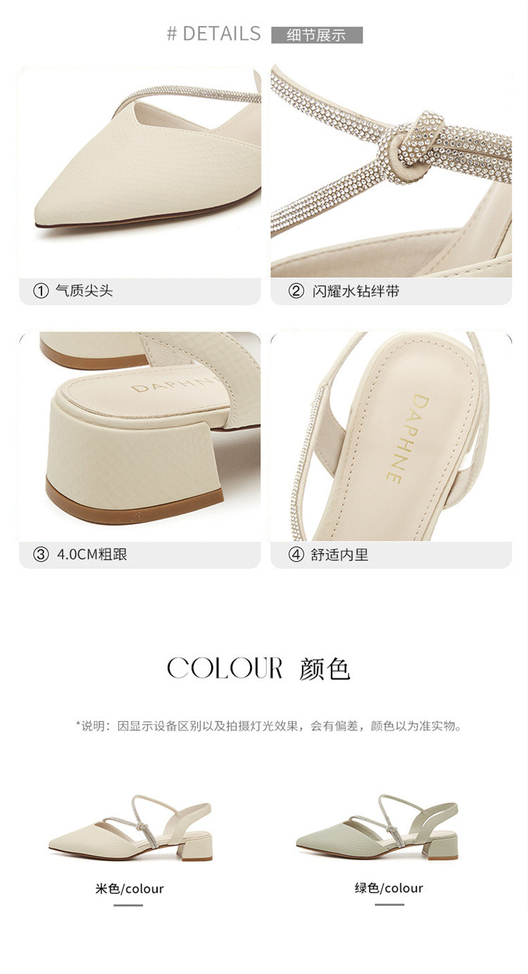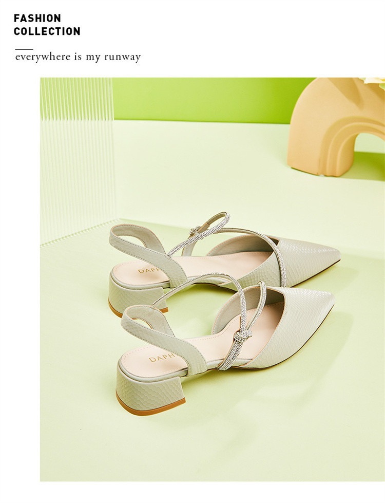 商品名称:夏季时装鞋一字带凉鞋尖头粗跟后空凉鞋女水钻细闪女单鞋通勤鞋子 876887