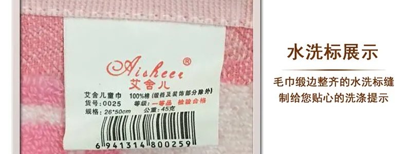 商品名称:艾舍儿 色织提花儿童毛巾(26*50cm)100%棉 (粉色)*1条