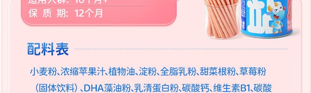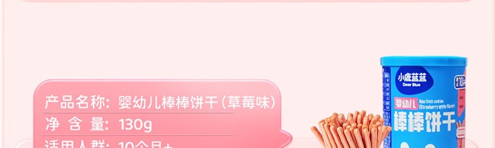 商品名称:小鹿蓝蓝 棒棒饼干 130g/罐 (草莓苹果味)