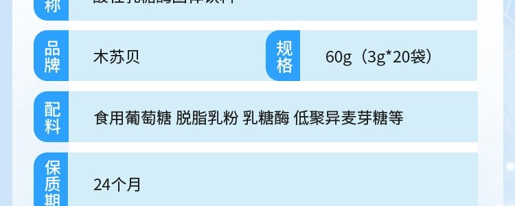 商品名称:木苏贝 酸性乳糖酶 60g