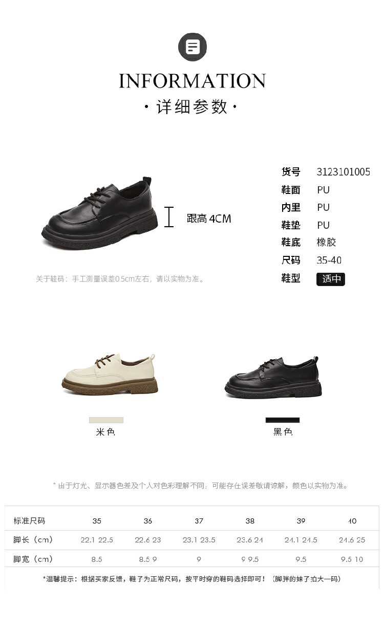 商品名称:【热销爆款】春季复古英伦风牛津鞋学院厚底乐福鞋通勤鞋单鞋女鞋 725914