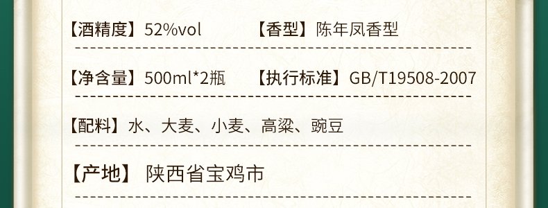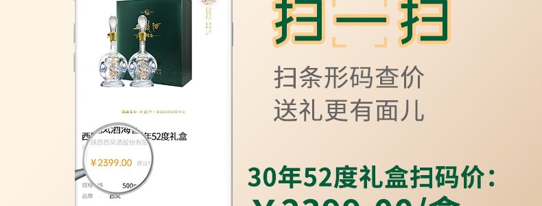 商品名称:西凤酒 30年纯粮酿造凤香型白酒礼盒 52度*2瓶/盒