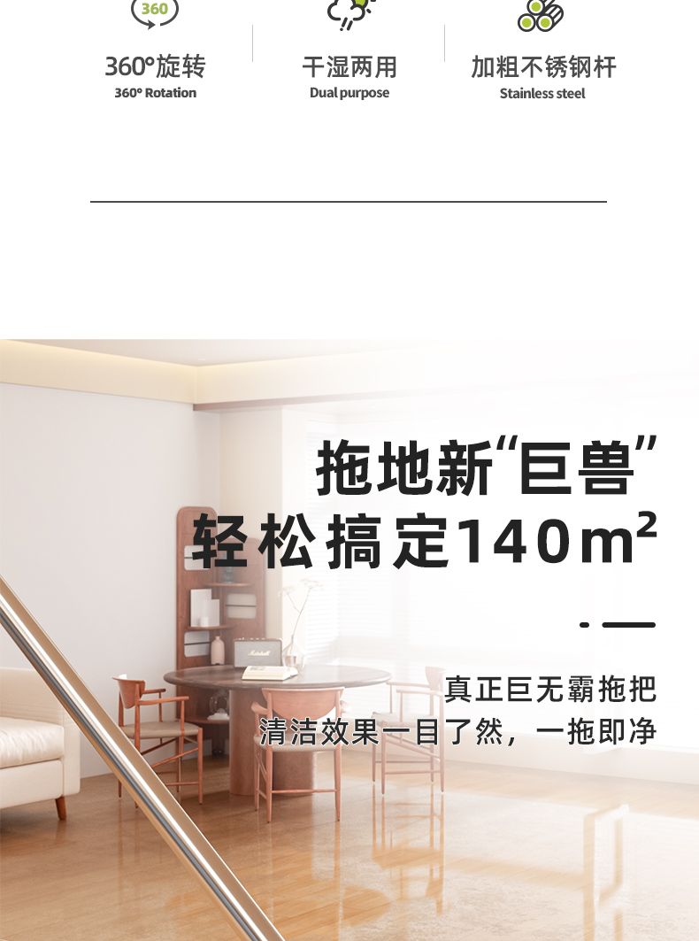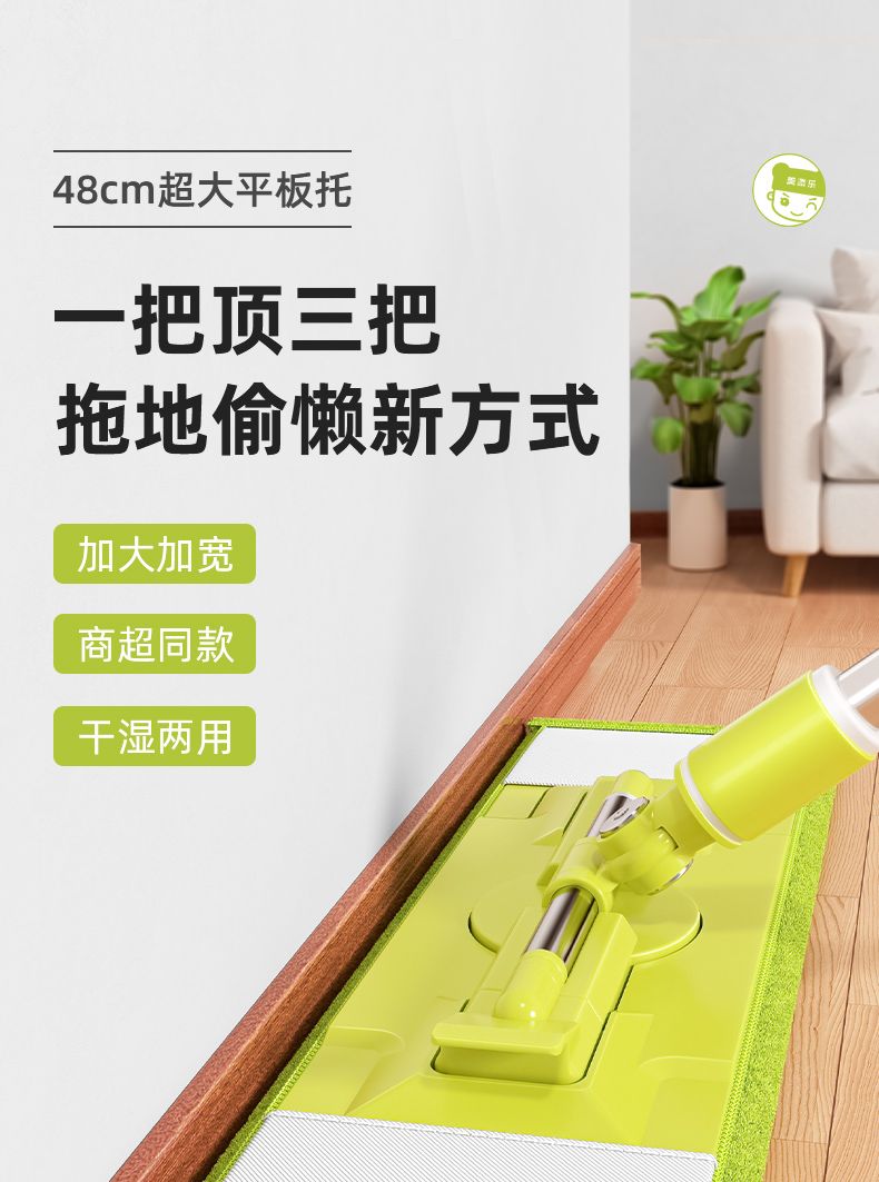 商品名称:美添乐夹布平板拖把MTL-DS214 (3布+1刮刀)