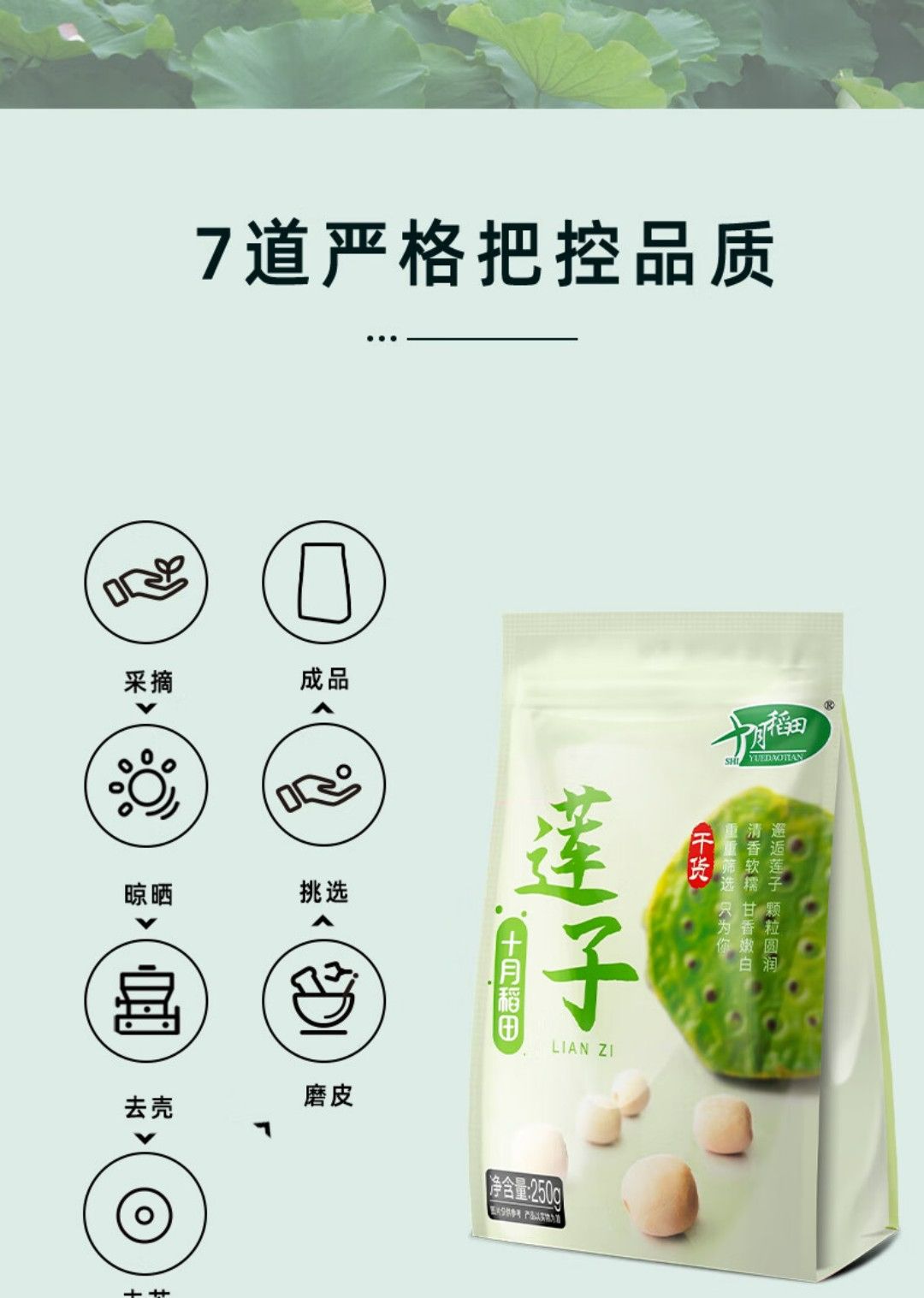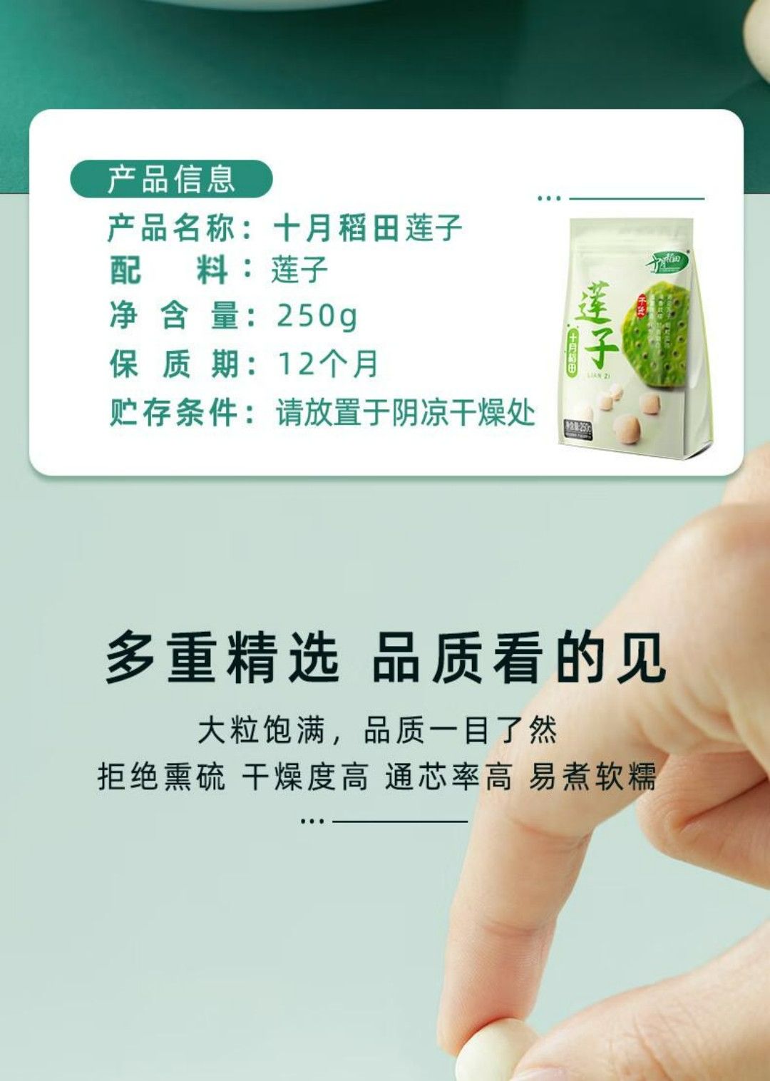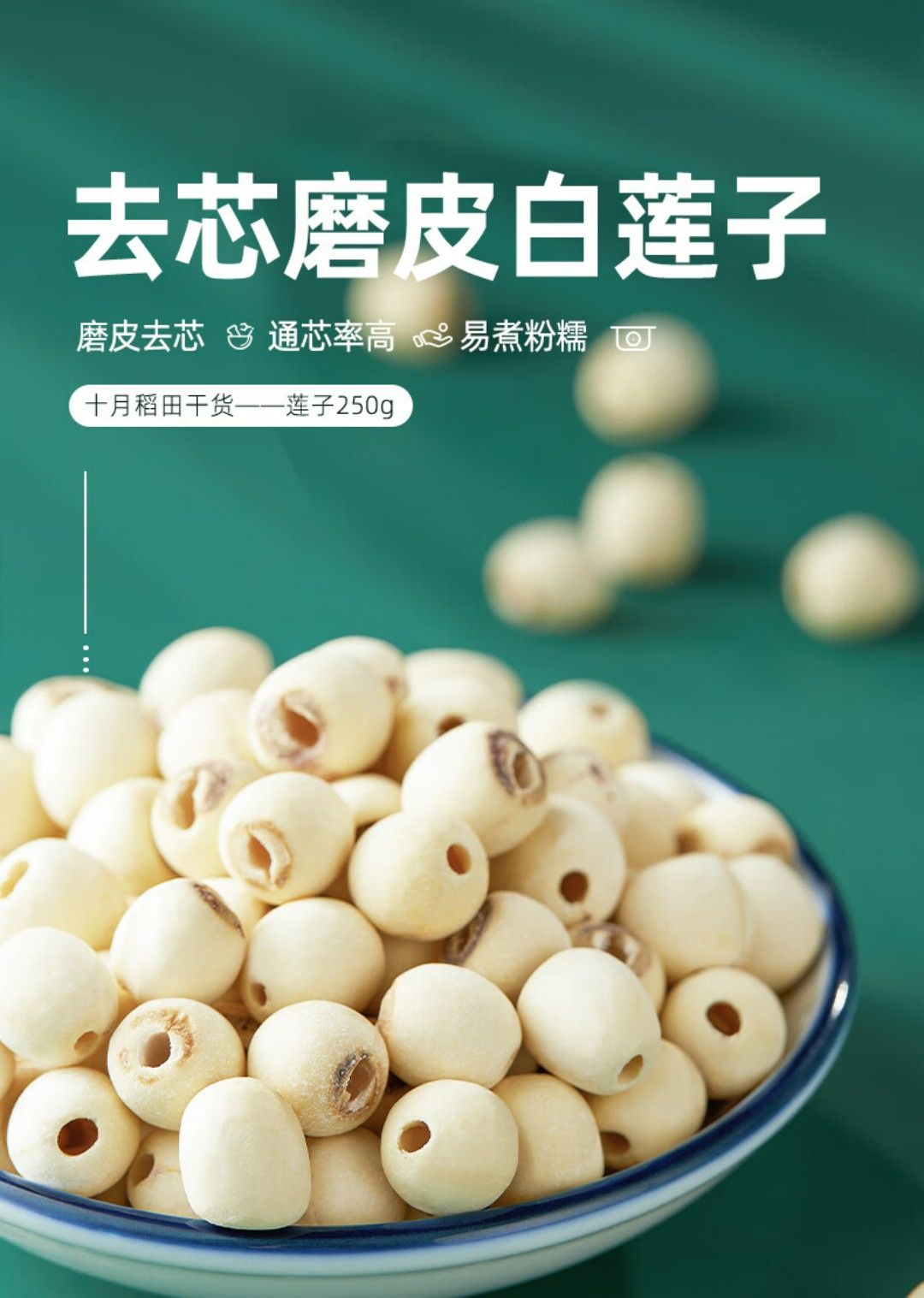 商品名称:十月稻田 去芯磨皮白莲子250g 湘潭特产