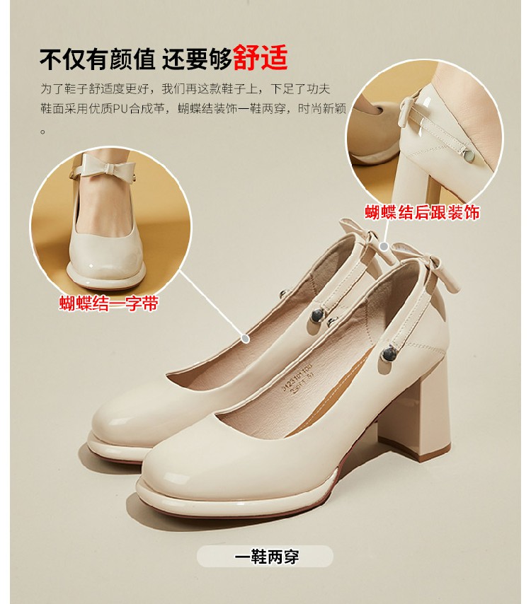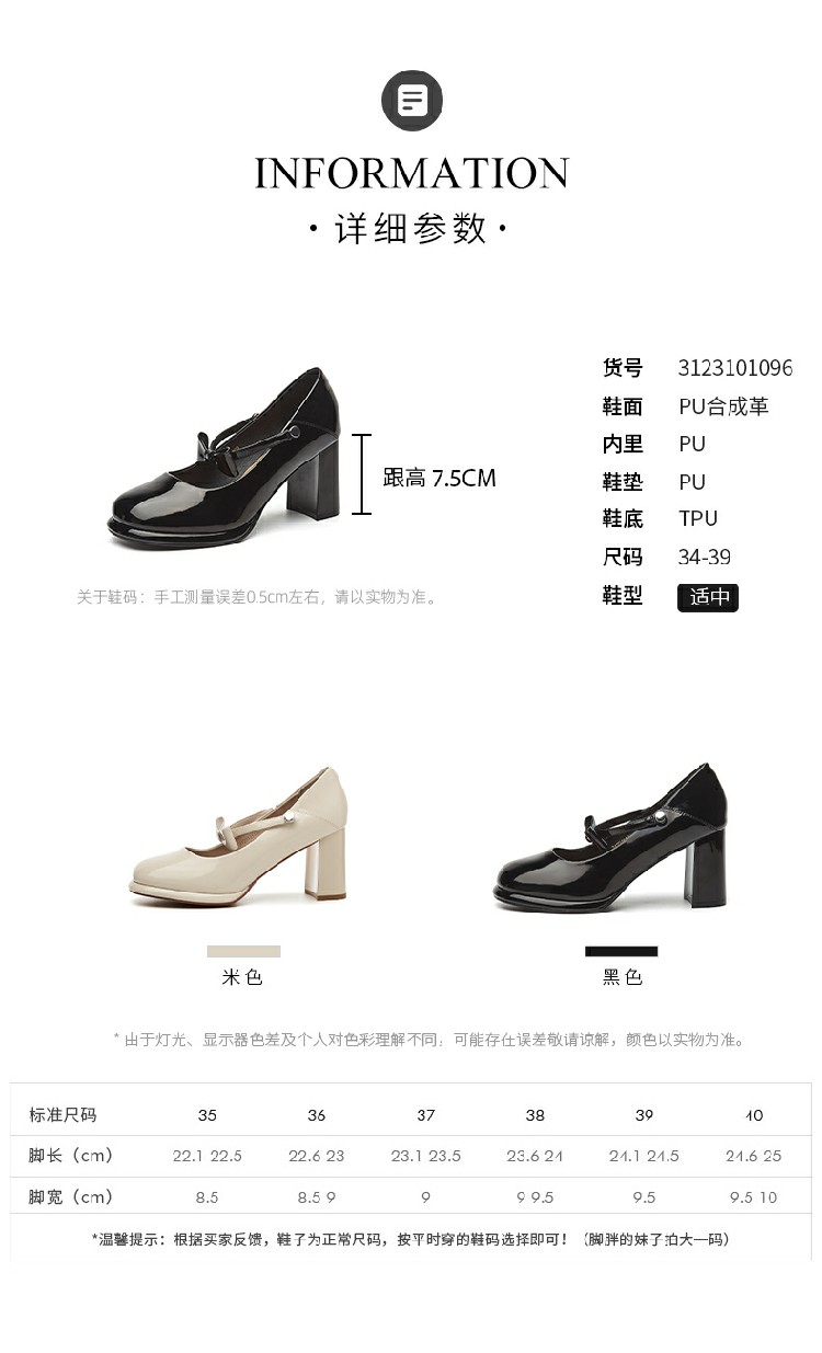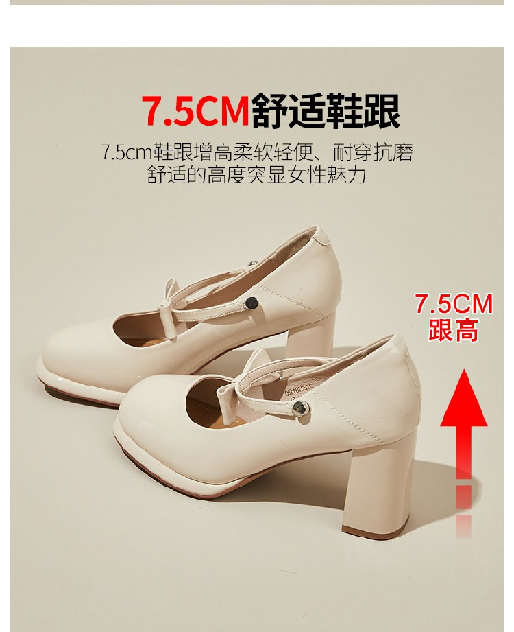 商品名称:【秒增7.5】粗跟小皮鞋小个子增高玛丽珍女鞋时尚女单鞋女鞋 153370