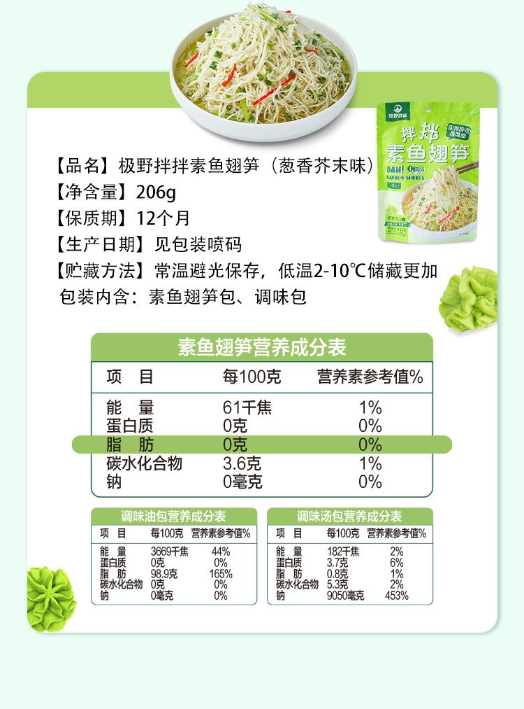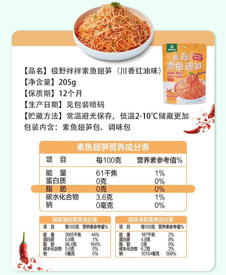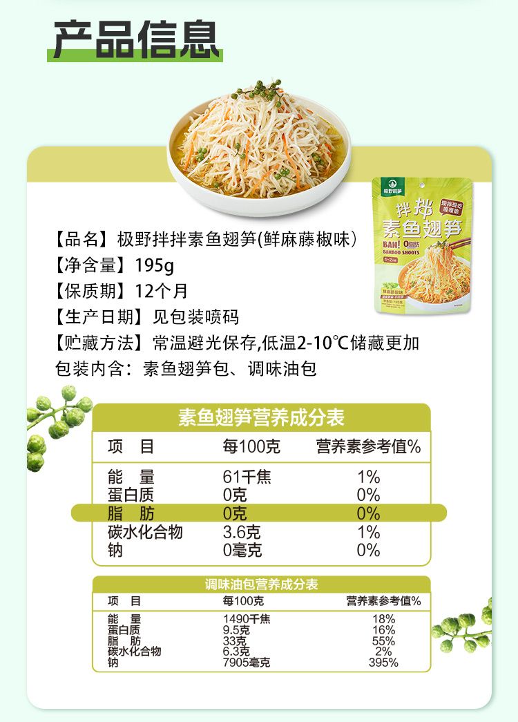 商品名称:极野拌拌素鱼翅笋(鲜麻藤椒味)195g*1袋