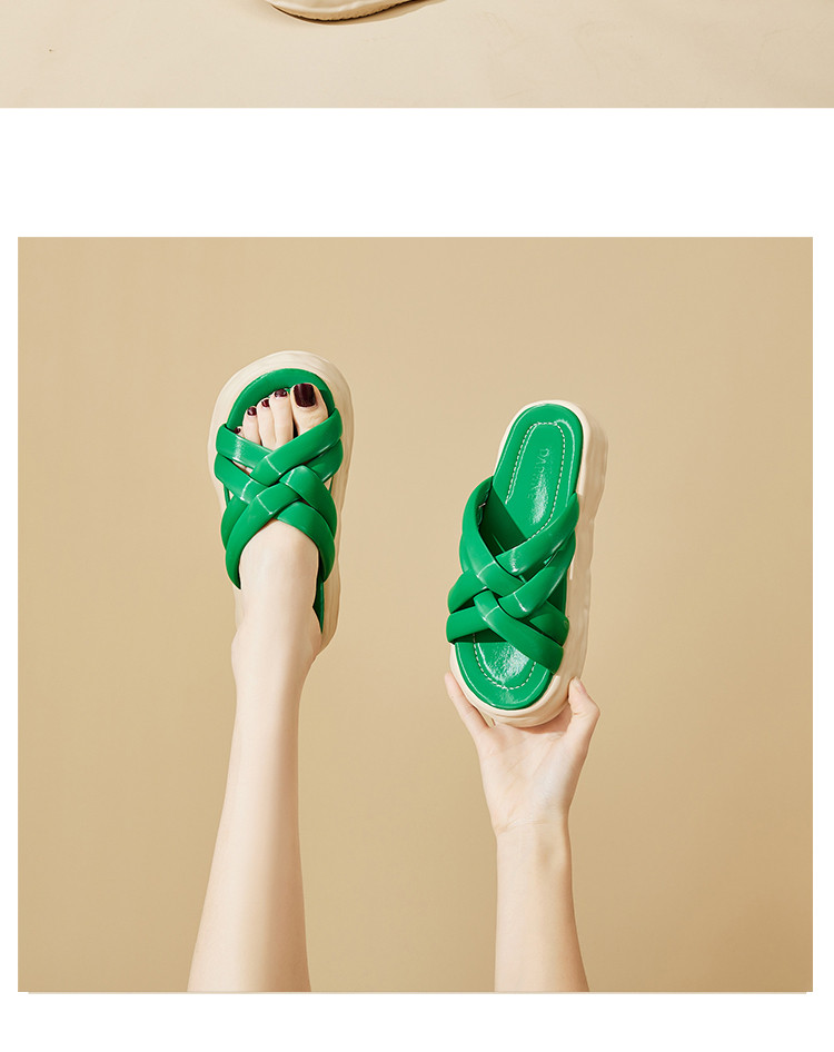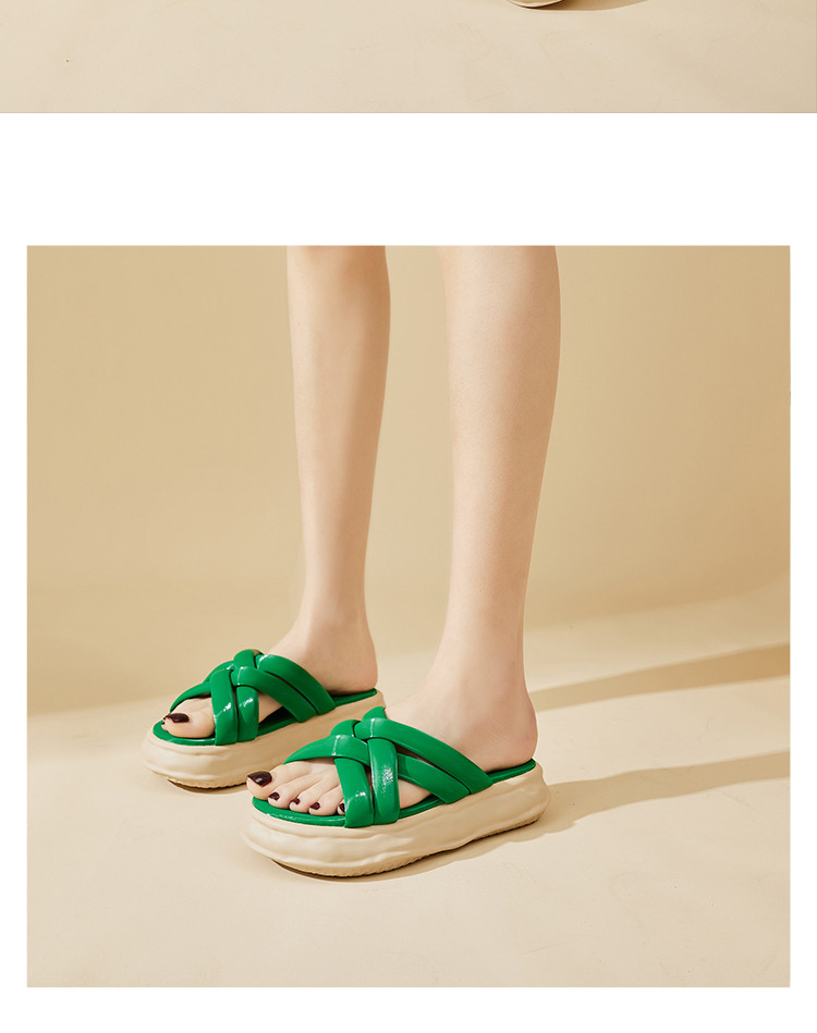 【潮流百搭】夏季百搭厚底撞色拖鞋外穿软底潮流拖鞋女透气 127255