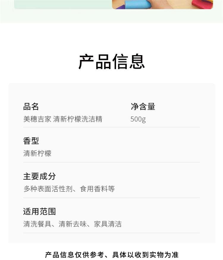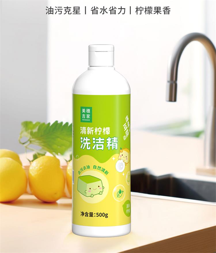 商品名称:美穗吉家(mihooce)清新柠檬洗洁精餐具净除菌去油清新去异味洗涤灵剂 500g/瓶
