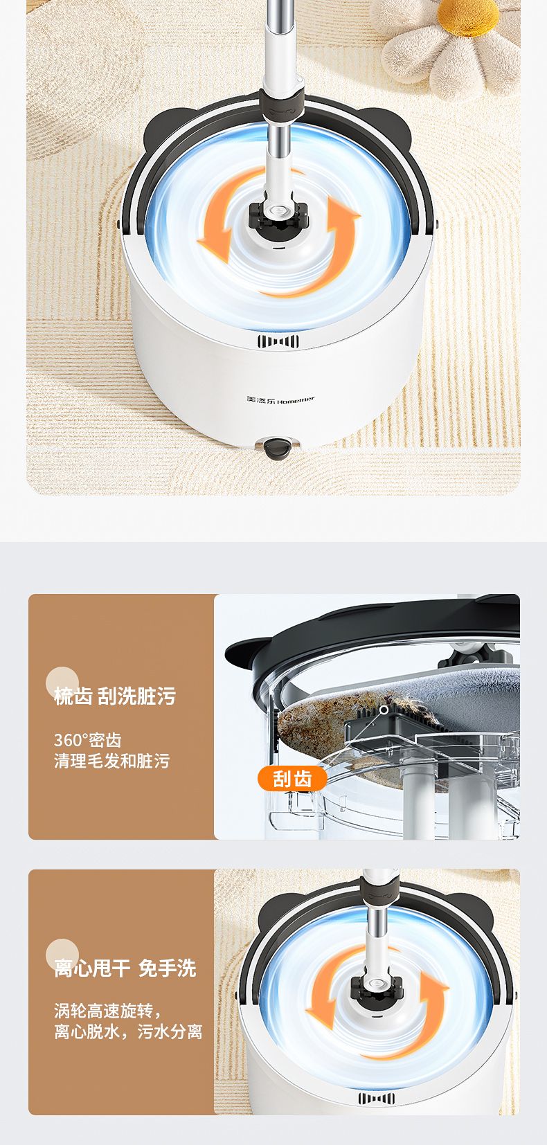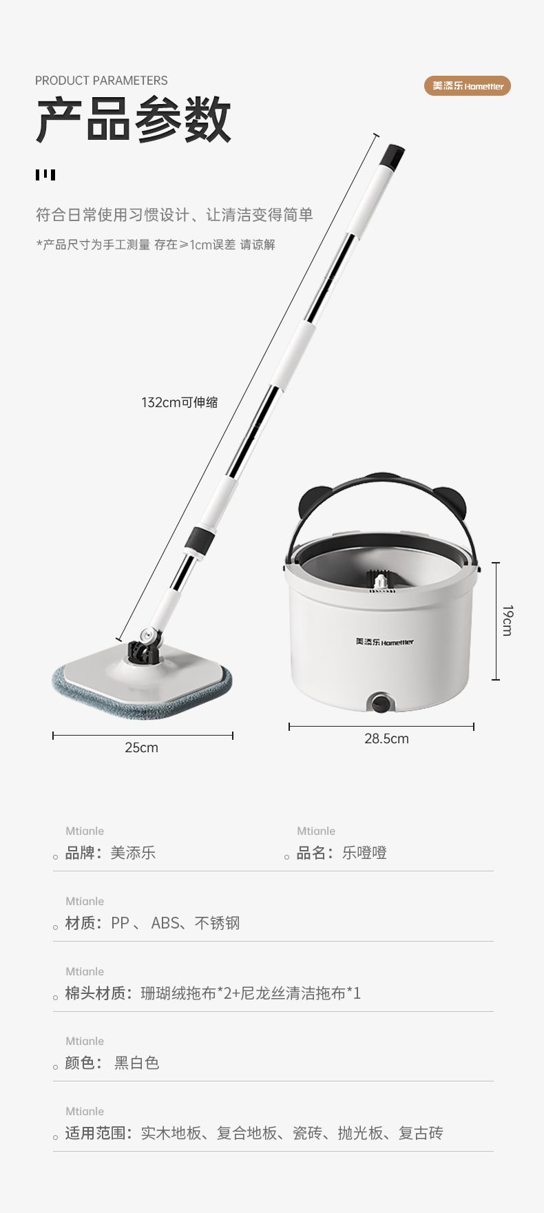 商品名称:美添乐拖把家用一拖净免手洗净污分离旋转拖把MTL-DS125 (3布+清洁片)